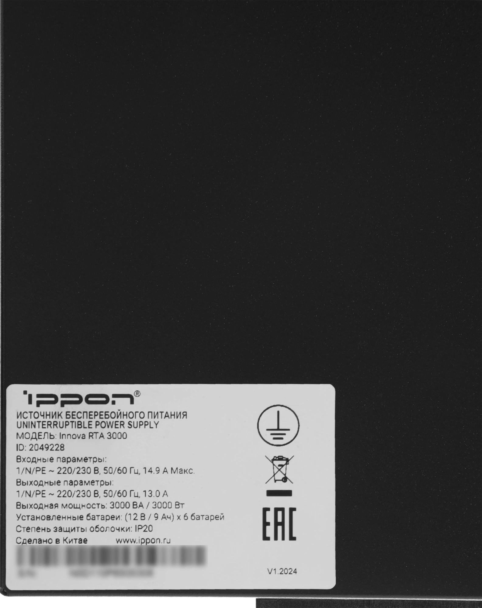 Источник бесперебойного питания Ippon Innova RTA 3000 3000Вт 3000ВА черный
