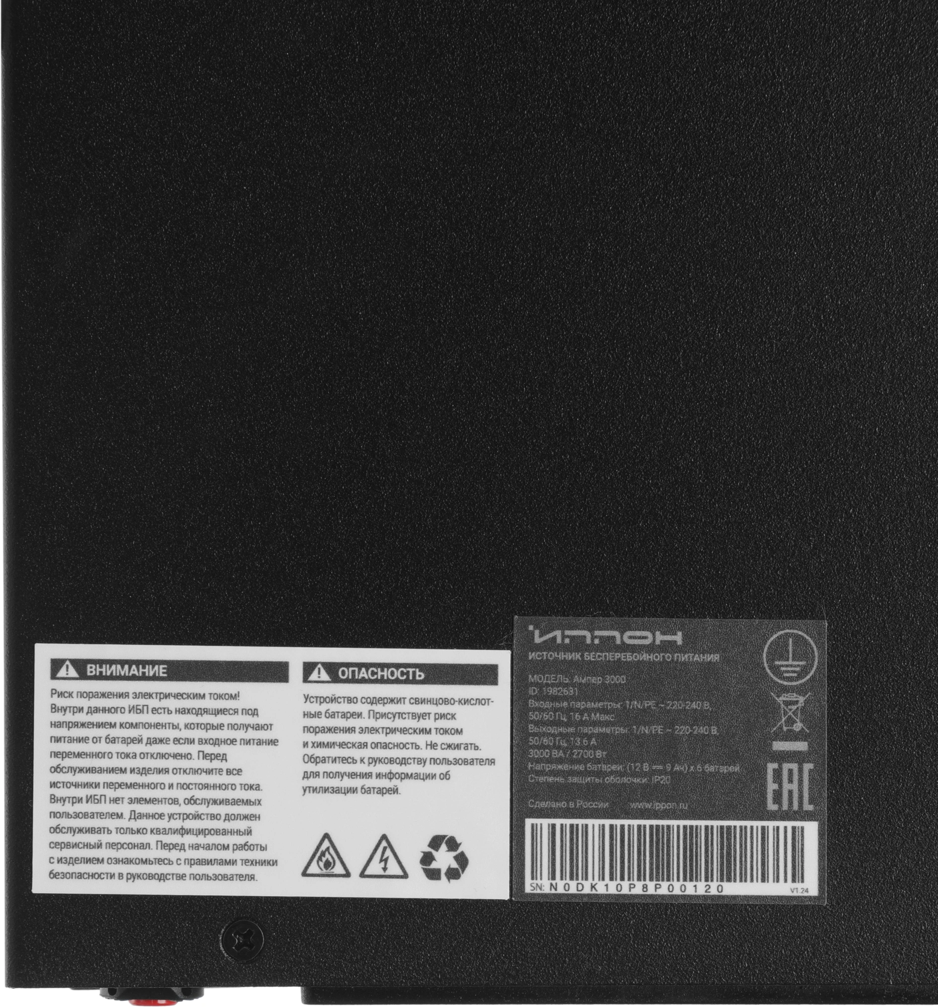Источник бесперебойного питания Ippon Ампер 3000 2700Вт 3000ВА черный