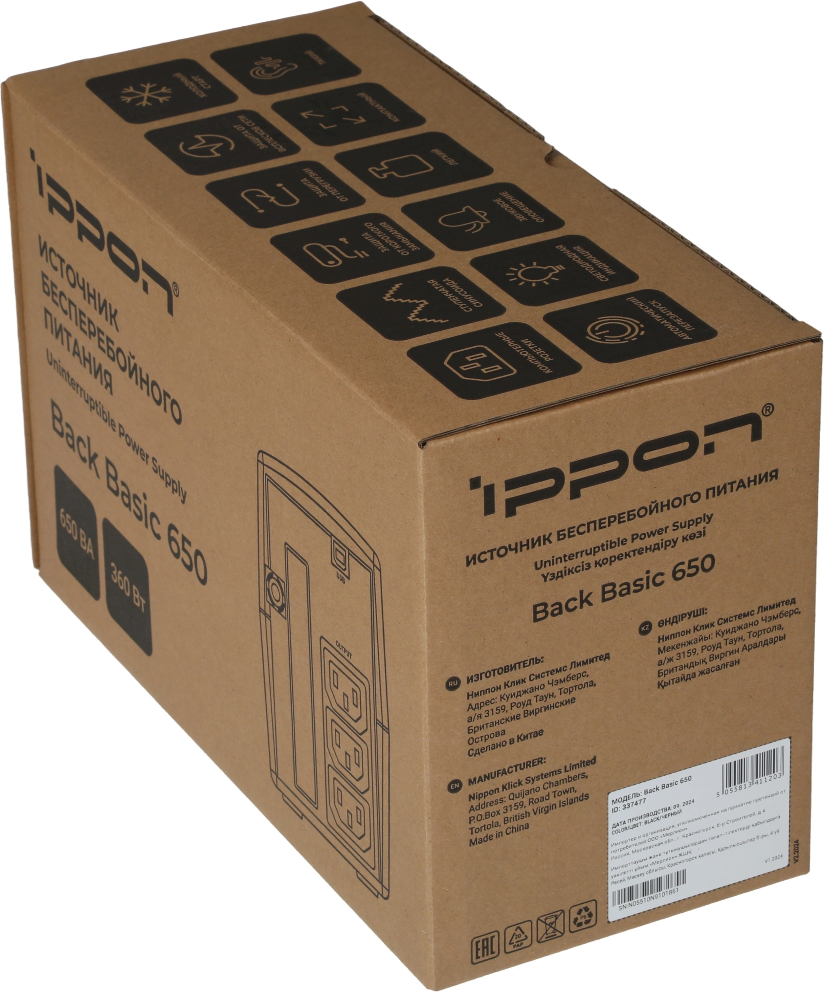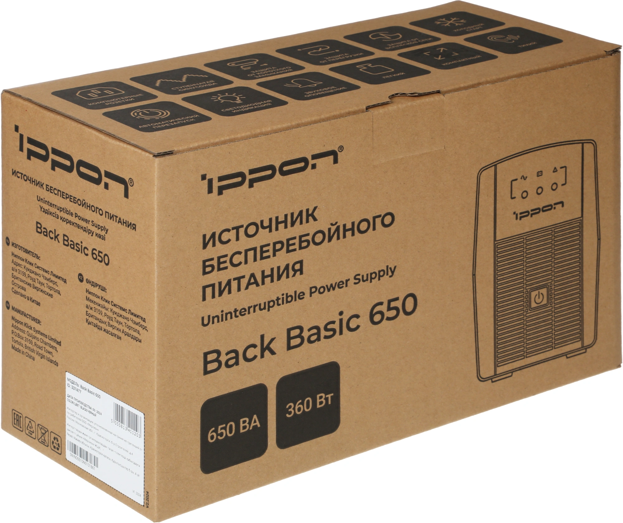 Источник бесперебойного питания Ippon Back Basic 650 360Вт 650ВА черный