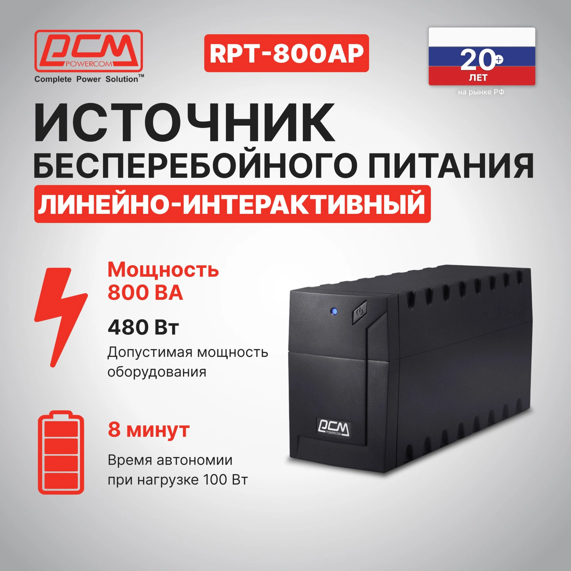 Источник бесперебойного питания Powercom Raptor RPT-800AP 480Вт 800ВА черный
