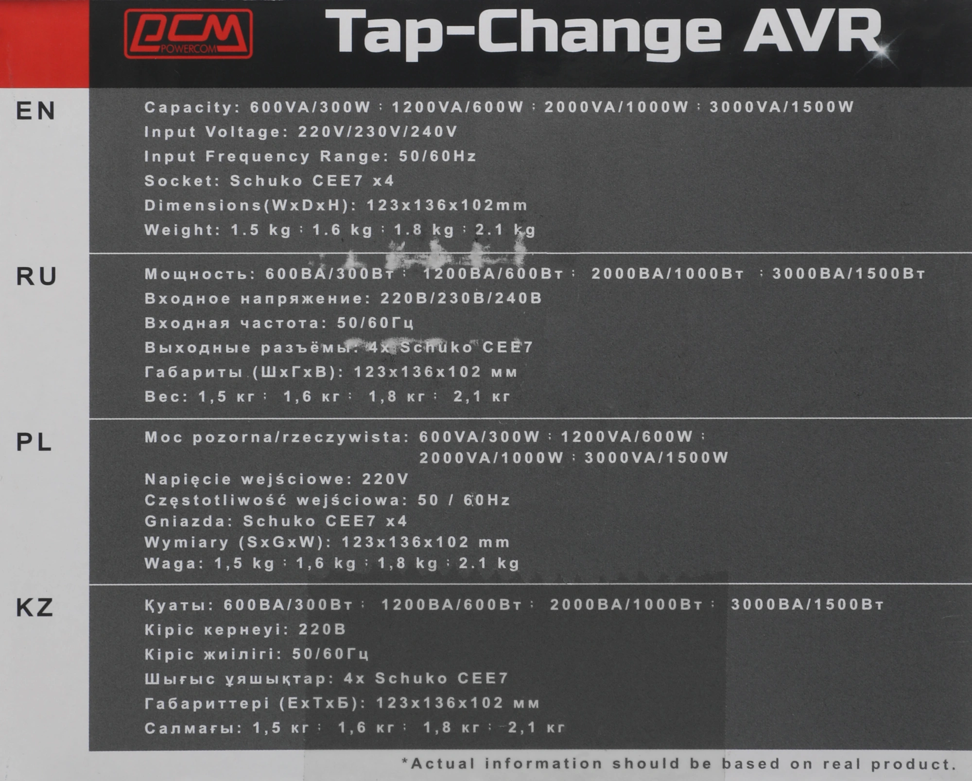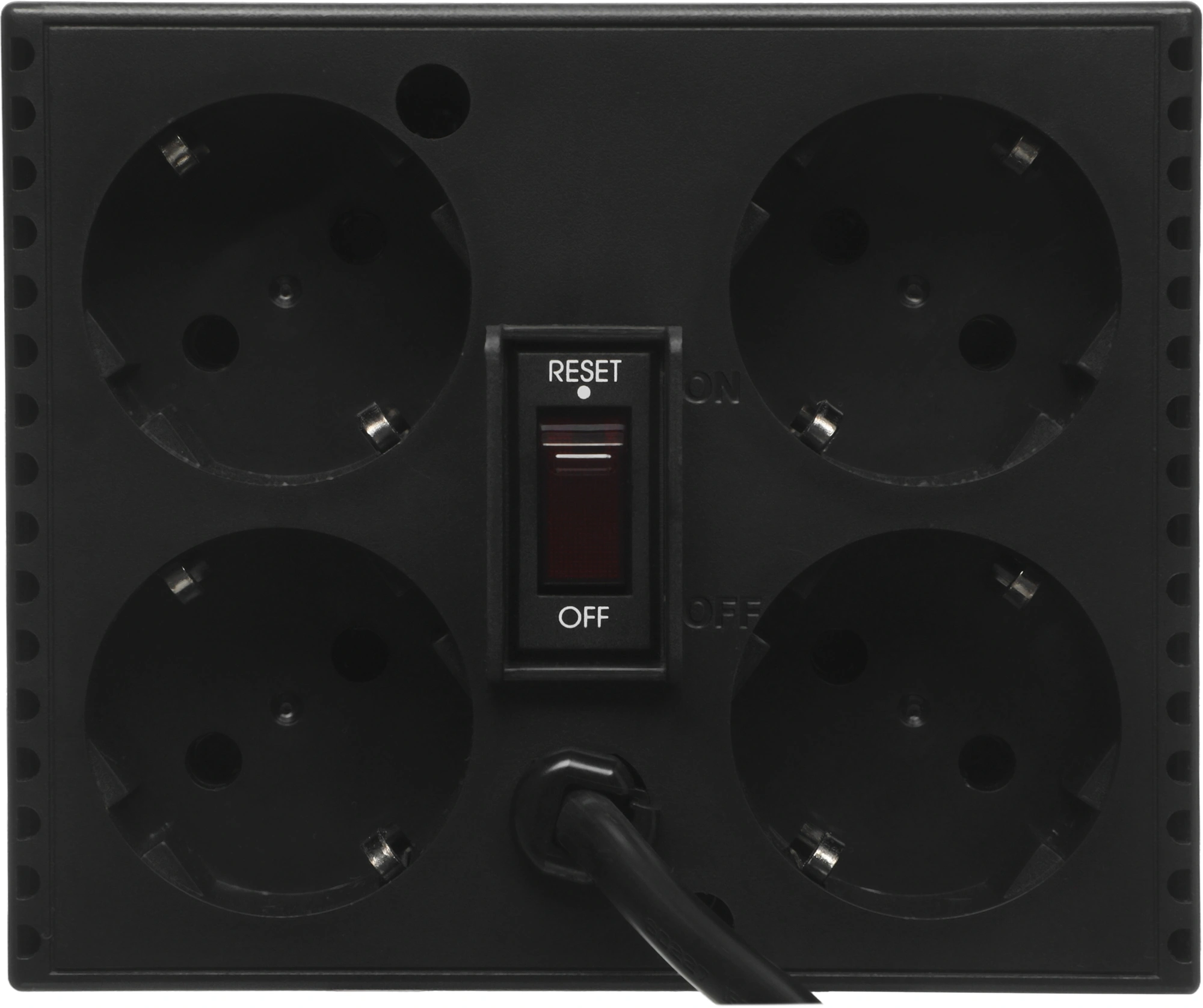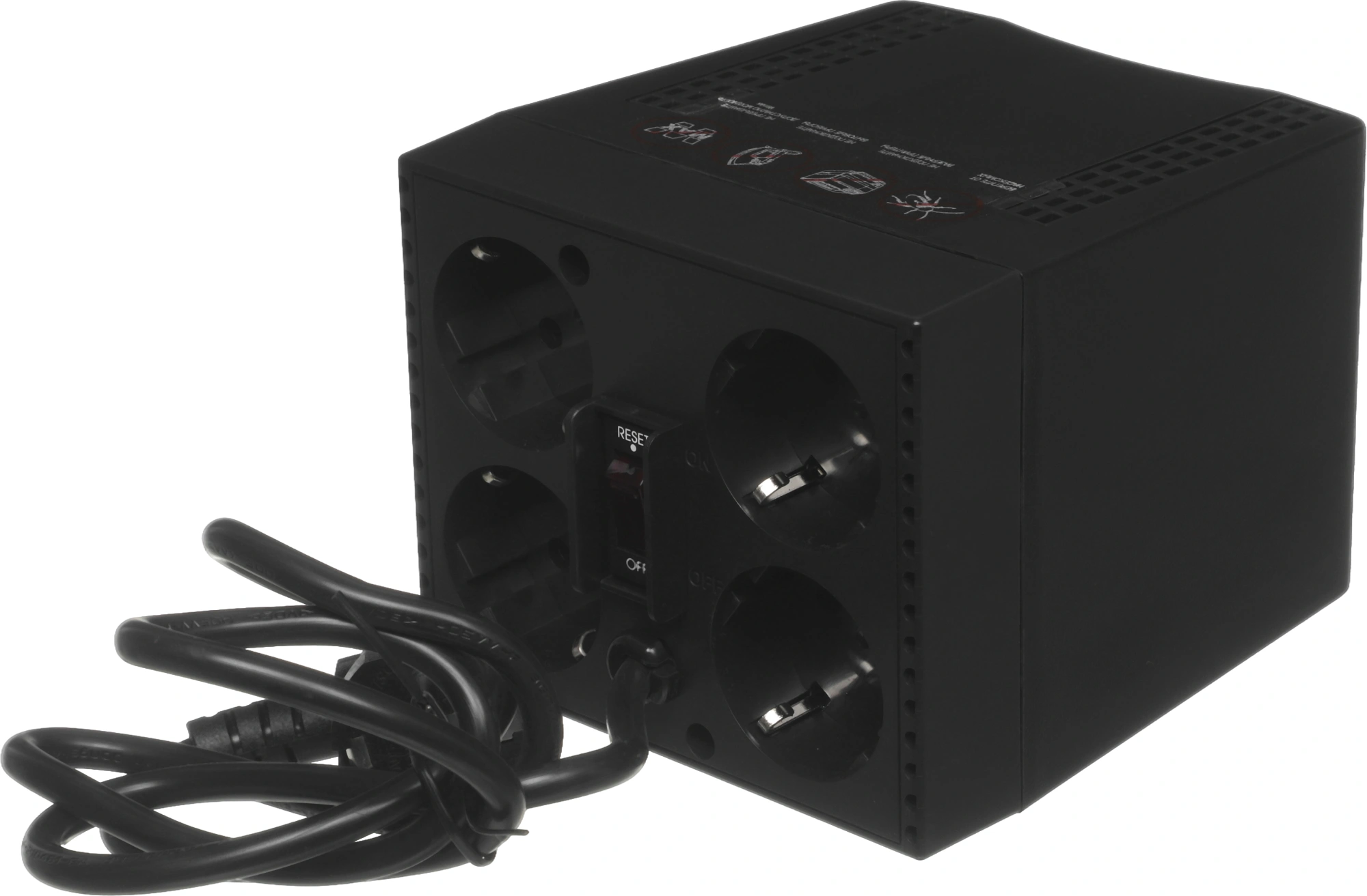 | Особенности | эффективность до 95%, потребляемая мощность менее 10 Вт, варистор для защиты от всплексов напряжения, стабилизация выходного напряжения +/- 5%, индикатор включения, индикатор пониженного напряжения, индикатор повышенного напряжения, все розетки оборудованны заземлением |