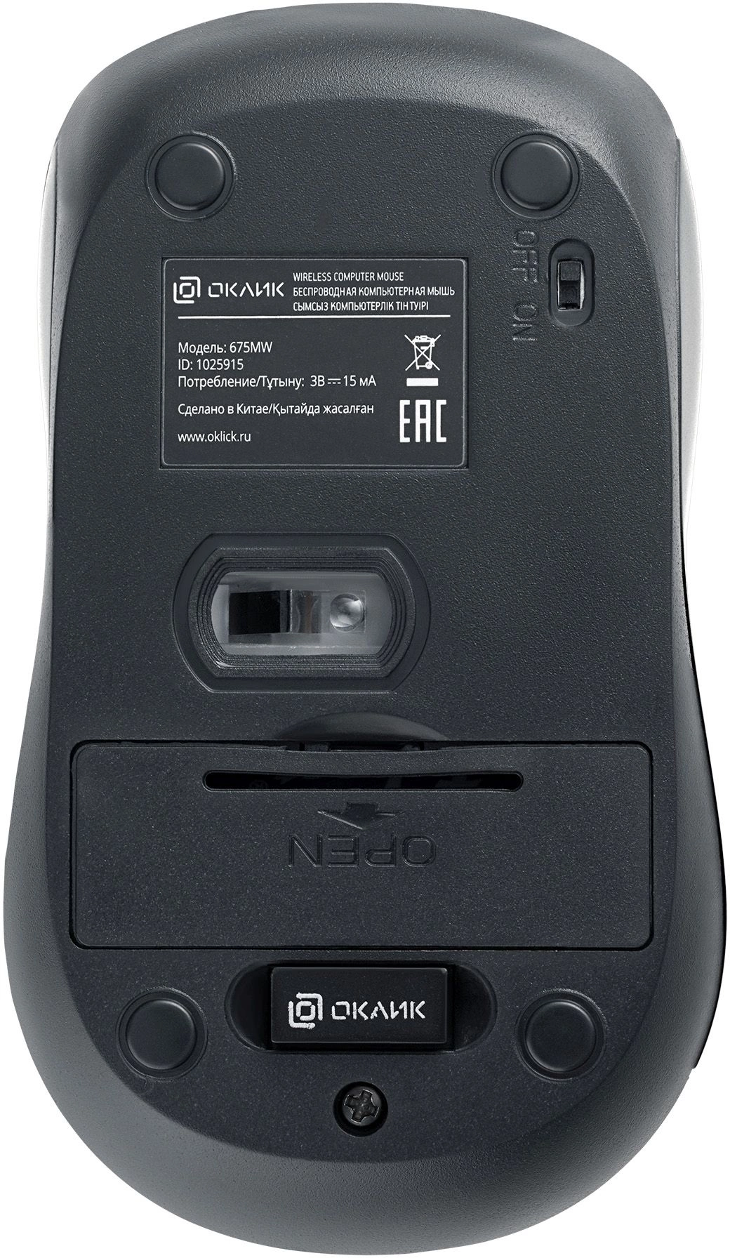 Мышь Оклик 675MW черный оптическая (800dpi) беспроводная USB для ноутбука (3but)