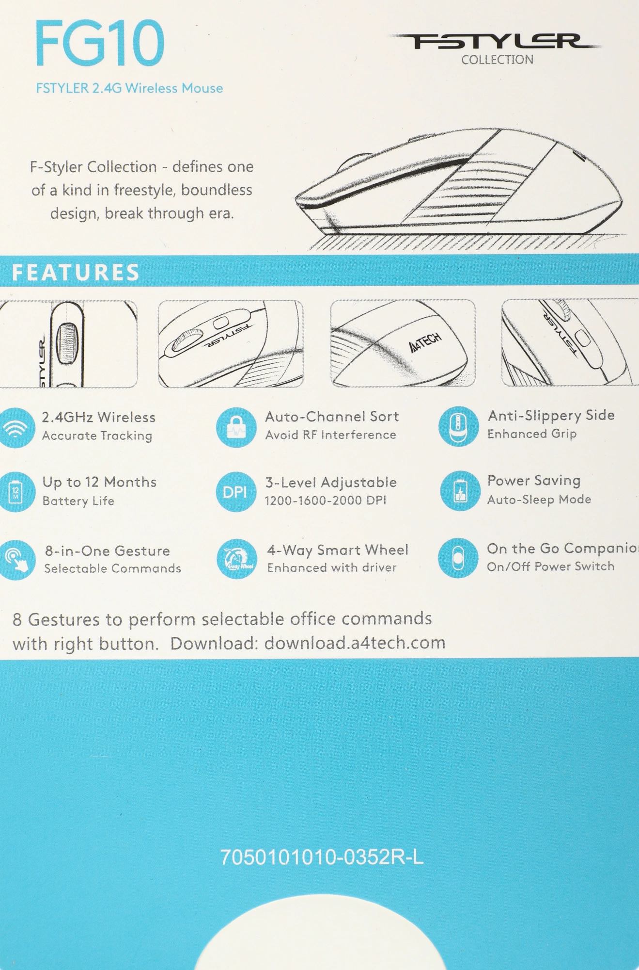 Мышь A4Tech Fstyler FG10 черный/синий оптическая (2000dpi) беспроводная USB (4but)