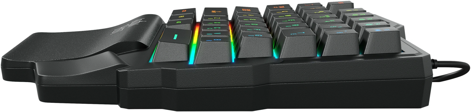 | Особенности | Компактный игровой блок с подставкой для запястья, клавиши с мультимедийным функционалом, многоцветная подсветка, длинный кабель с ферритовым фильтром, позолоченный коннектор USB |