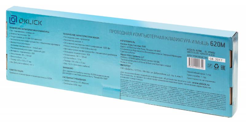 | Комплект поставки | Проводная компьютерная клавиатура и мышь 620M |