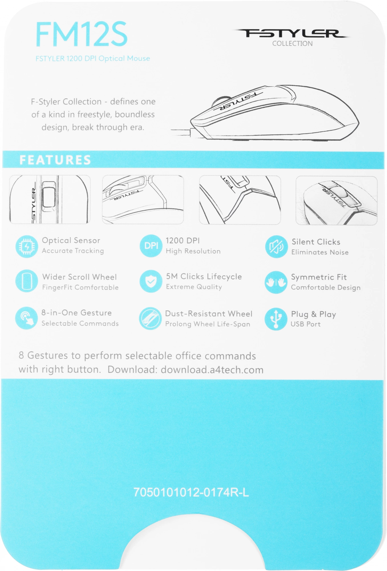 Мышь A4Tech Fstyler FM12S черный оптическая (1200dpi) silent USB (3but)