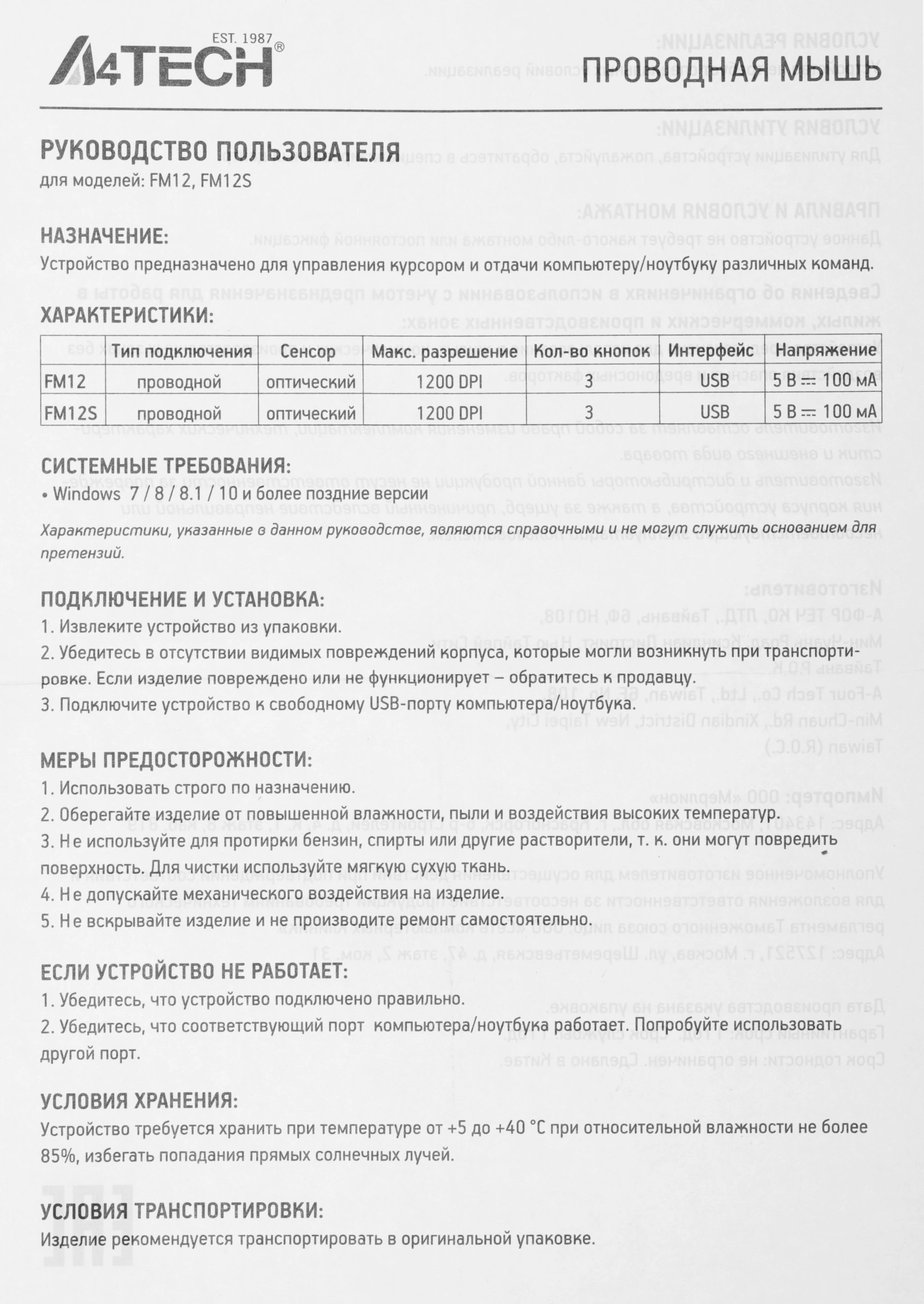 | PartNumber/Артикул Производителя | FM12S BLACK |