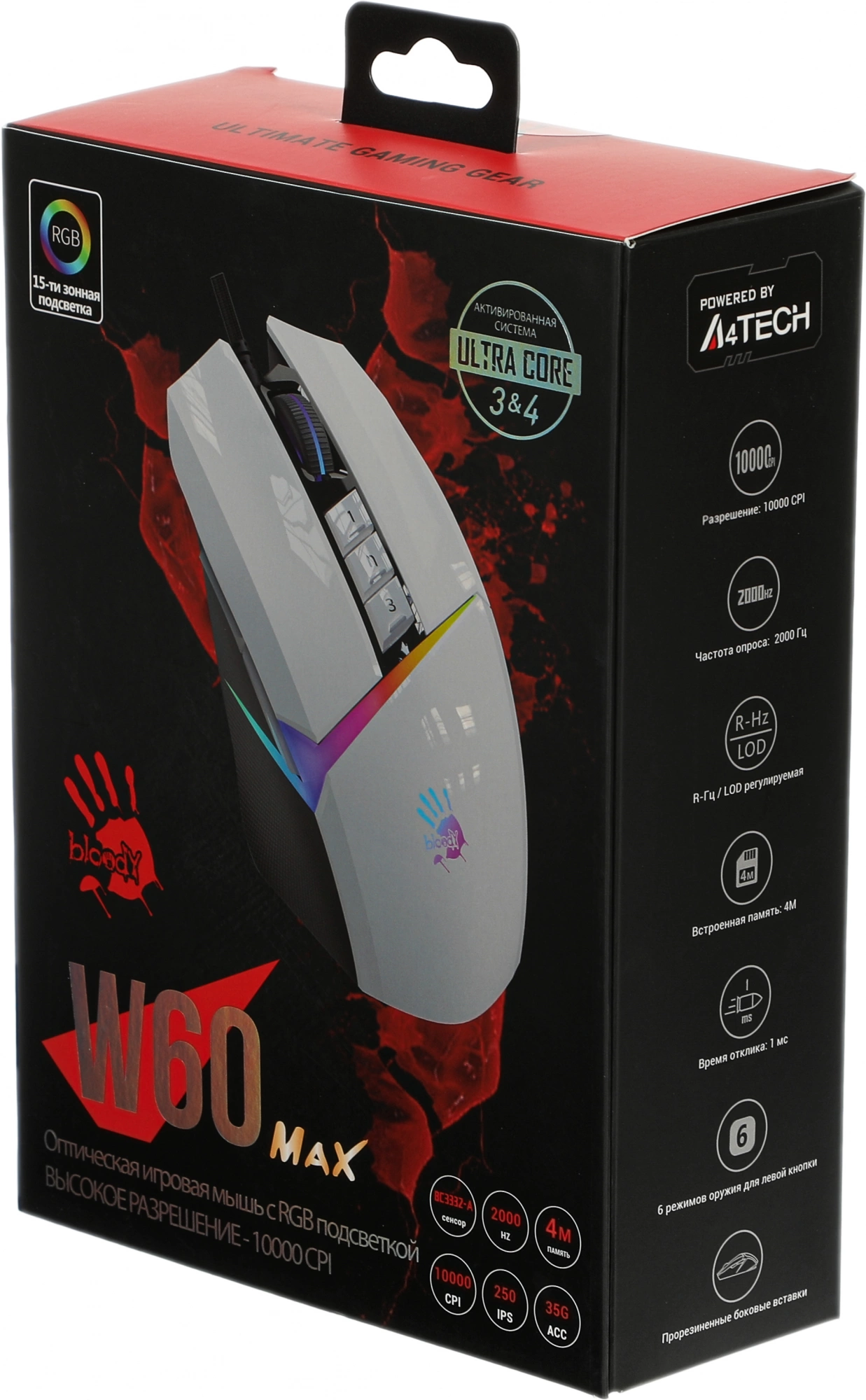 Мышь A4Tech Bloody W60 Max белый оптическая 10000dpi USB 10but (W60 MAX (PANDA WHITE))