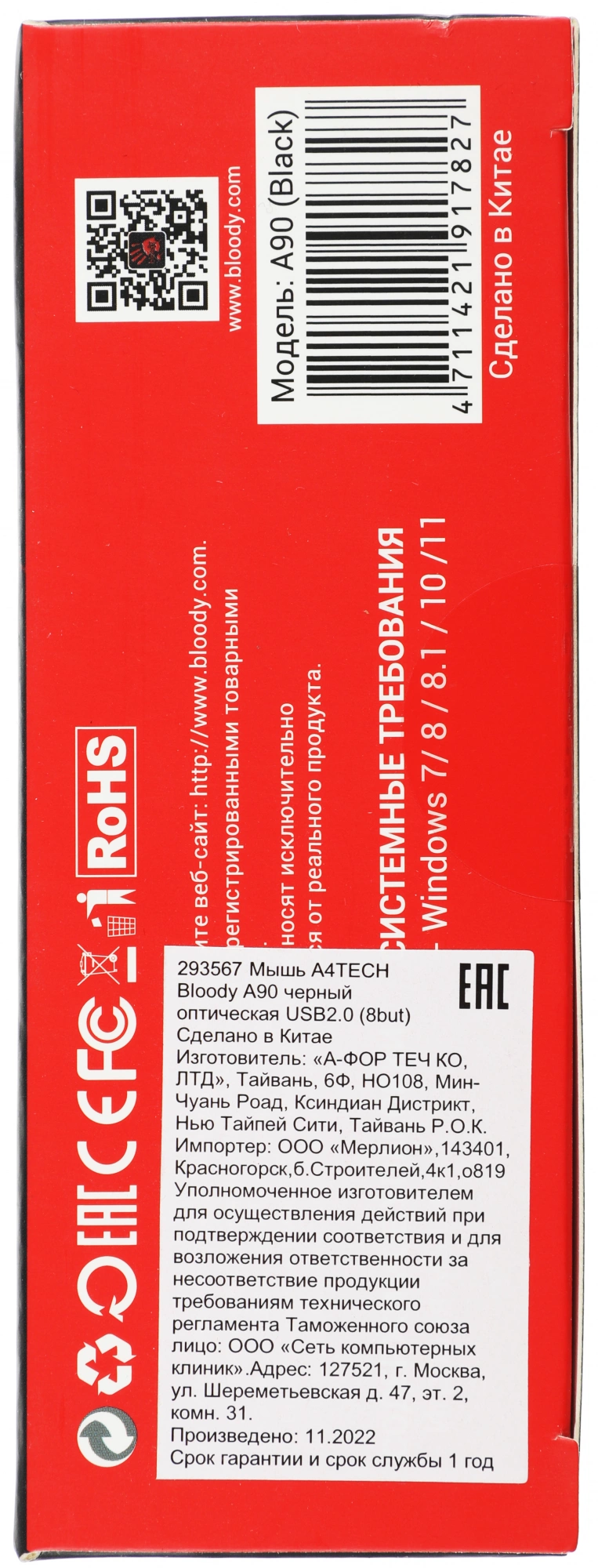 Мышь A4Tech Bloody A90 черный оптическая 6200dpi USB 8but
