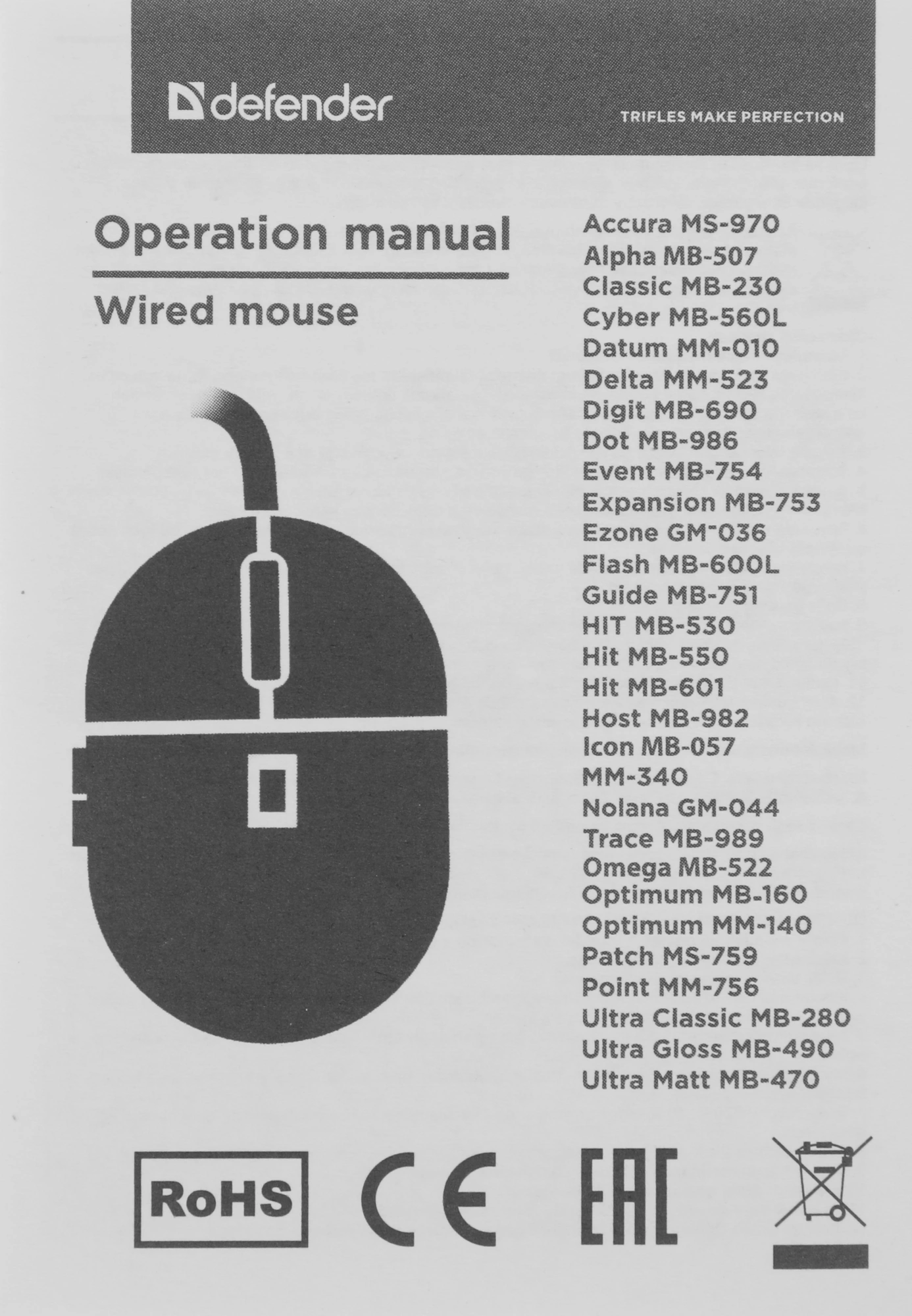| Комплектация | Мышь, инструкция, фирменная упаковка |