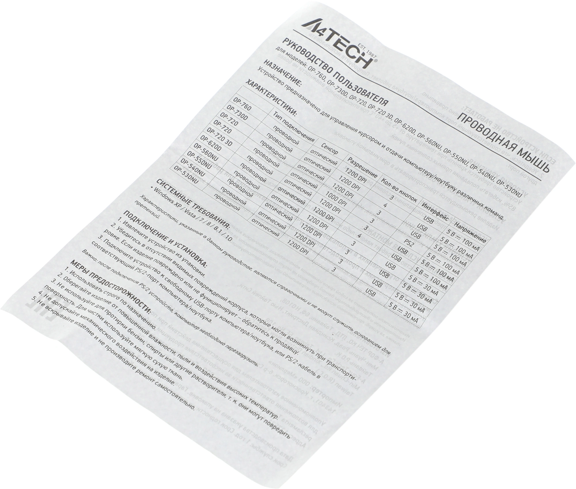 | PartNumber/Артикул Производителя | OP-720 USB (BLACK) |