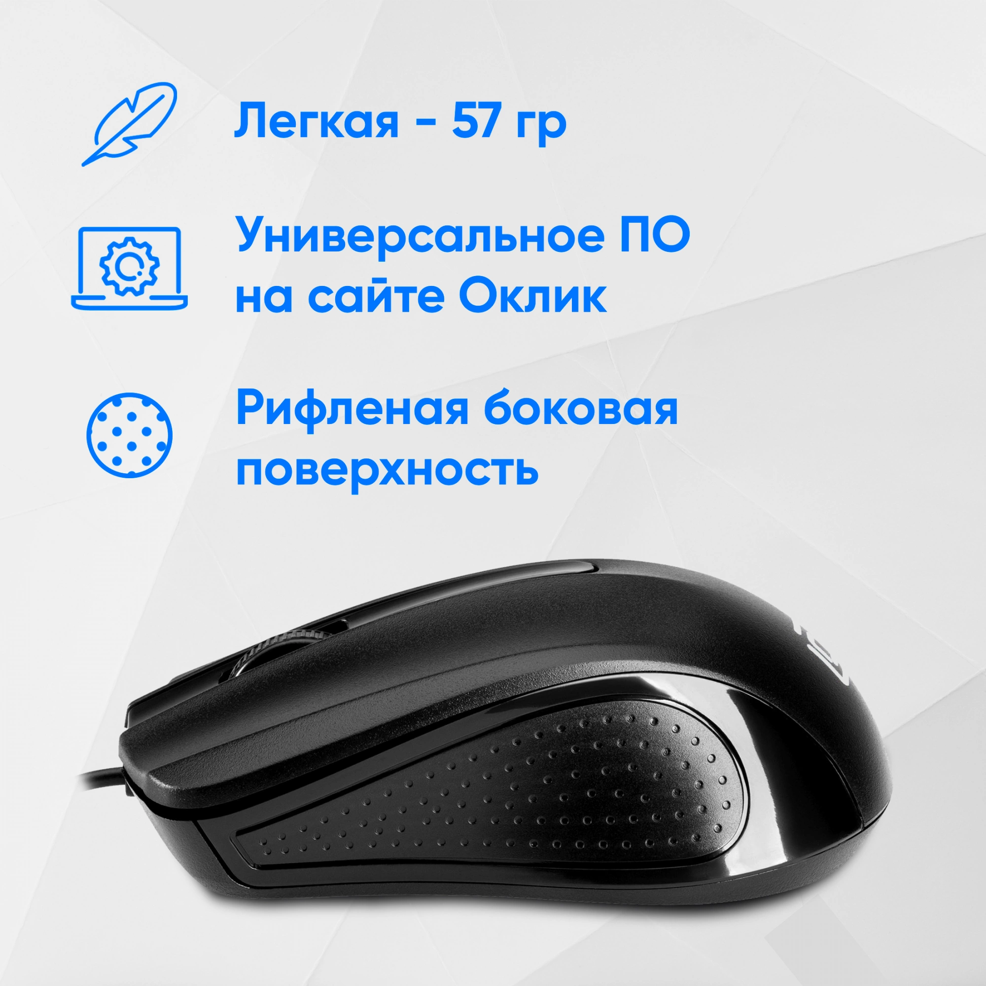 Мышь Оклик 225M черный оптическая (1000dpi) USB (3but)