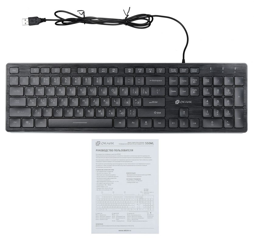 Клавиатура Оклик 550ML черный USB slim Multimedia LED