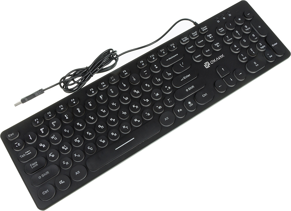 Клавиатура Оклик 420MRL черный USB slim Multimedia LED