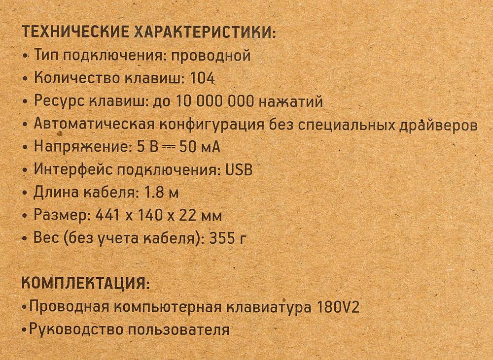 | Особенности | Универсальная офисная клавиатура с длинным кабелем 2 м |
