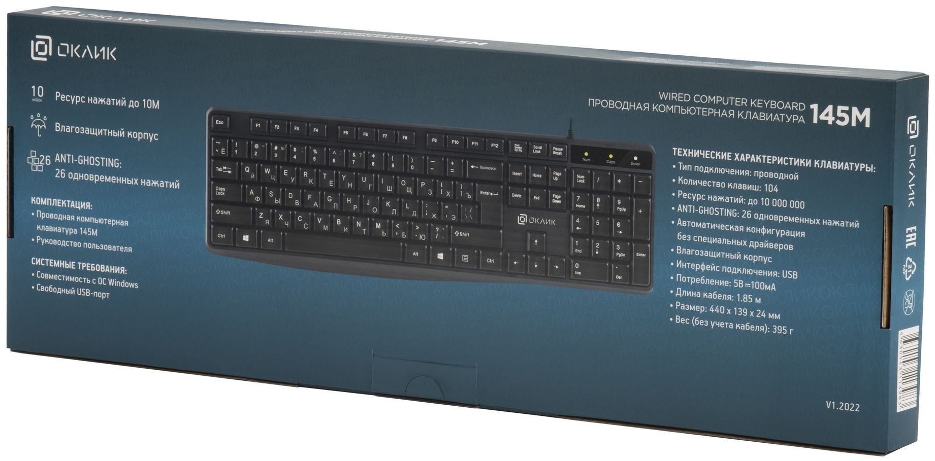 | Особенности | Ресурс нажатий:10 000 000/ Anti-ghosting до 26 одновременных нажатий.Влагозащитный корпус. Антифрикционные прорезиненные ножки. Автоматическая конфигурация без специальных драйверов. |