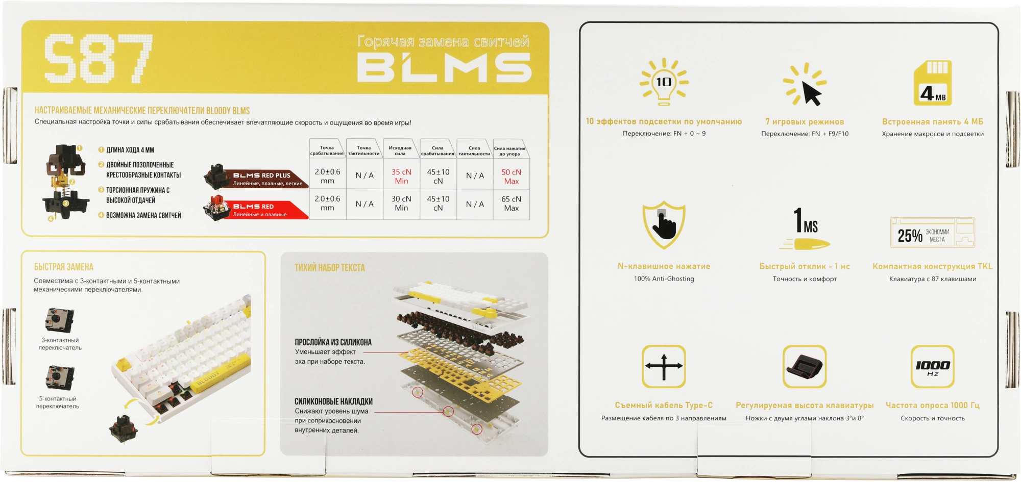 Клавиатура A4Tech Bloody S87 Energy механическая белый USB for gamer LED (S87 USB ENERGY WHITE)