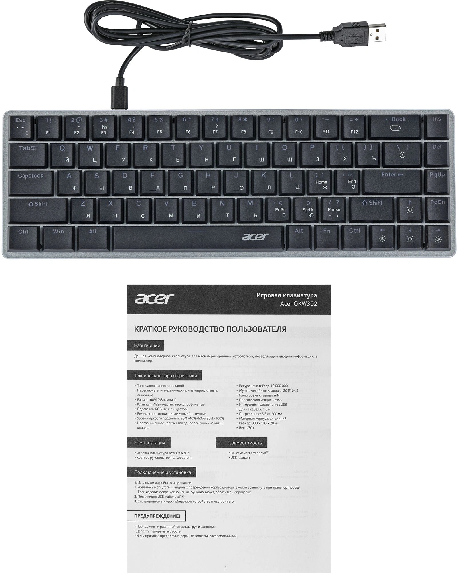 | Размеры клавиатуры | 300x20x103мм |