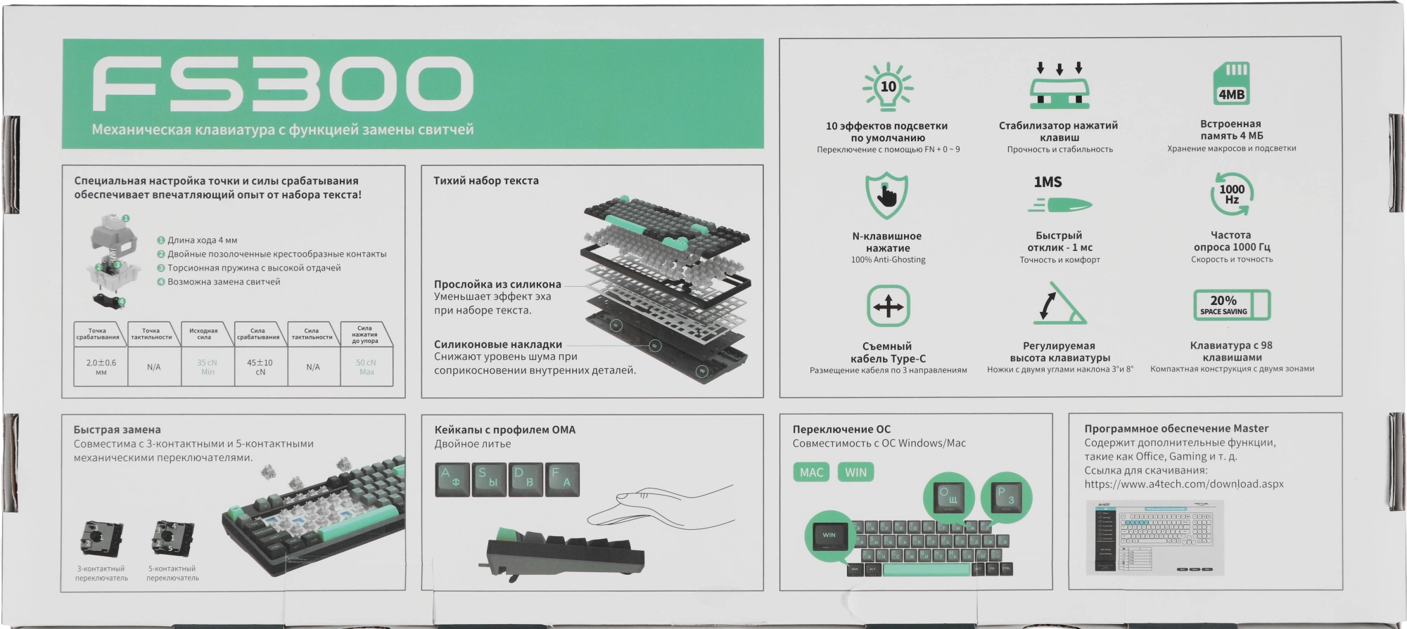 Клавиатура A4Tech Fstyler FS300 механическая черный/серый USB for gamer LED (FS300 PANDA ROCK)