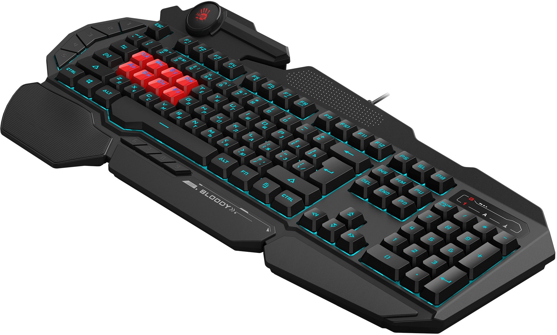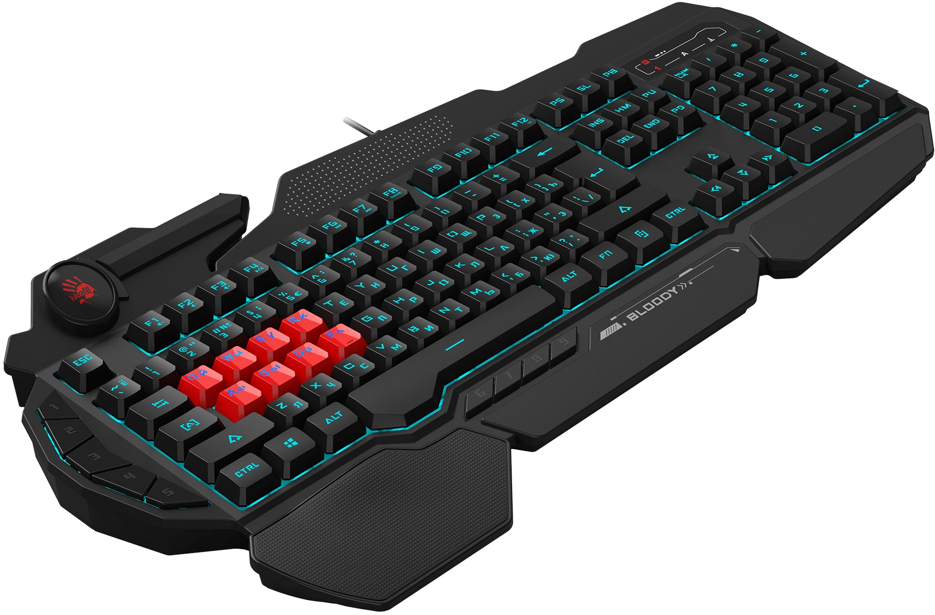 | Особенности | тип клавиш – мембранные (частично механика), 8 игровых клавиш (эти клавиши без подсветки), время отклика – 0.2 мс., прорезиненные ножки. Технология: Light Strike. Оптические переключатели: QWER/ASDF. |