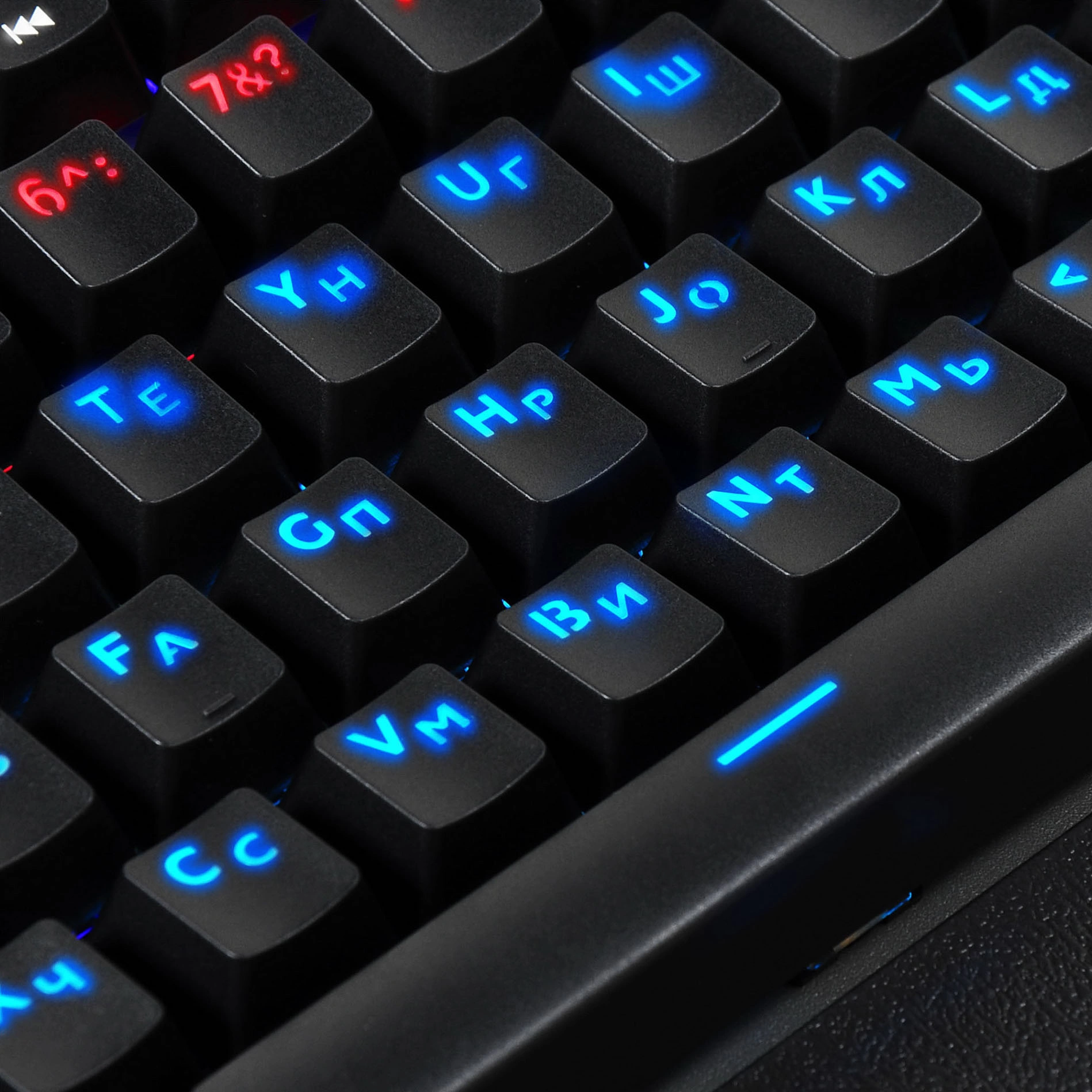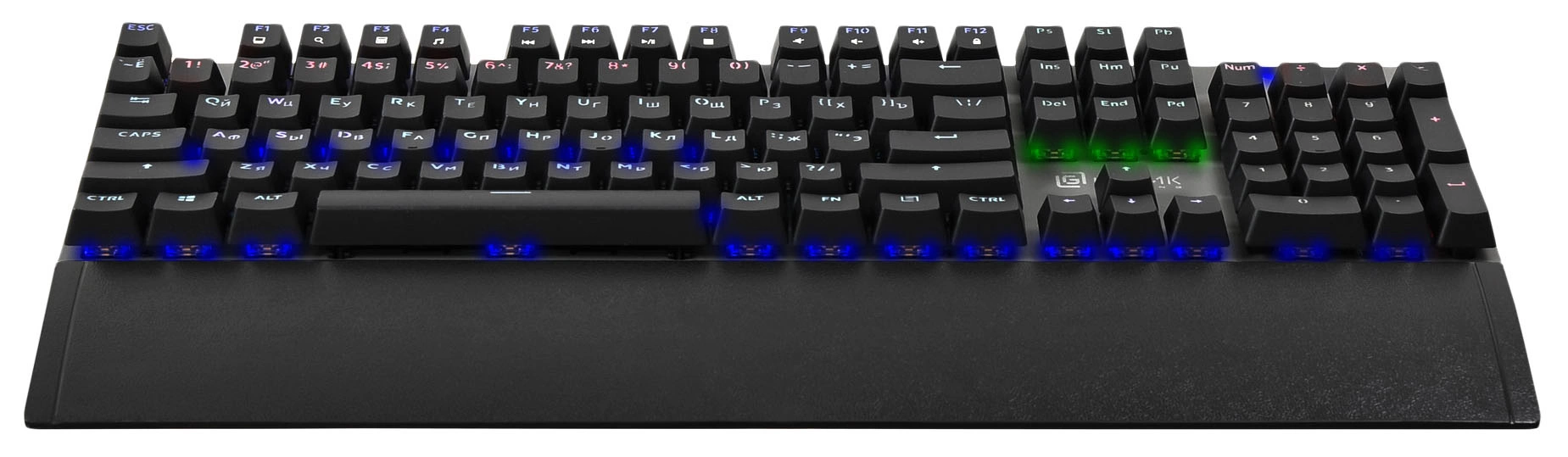 | Особенности | Игровая механическая клавиатура: Anti-Ghosting с неограниченным количеством нажатий. Многоцветная регулируемая подсветка. Количество режимов подсветки: более 20. Съемная магнитная подставка для рук размером 440 х 60 х 13 мм и весом 133 г., блокировка клавиши Пуск, мультимедийные функции клавиш |