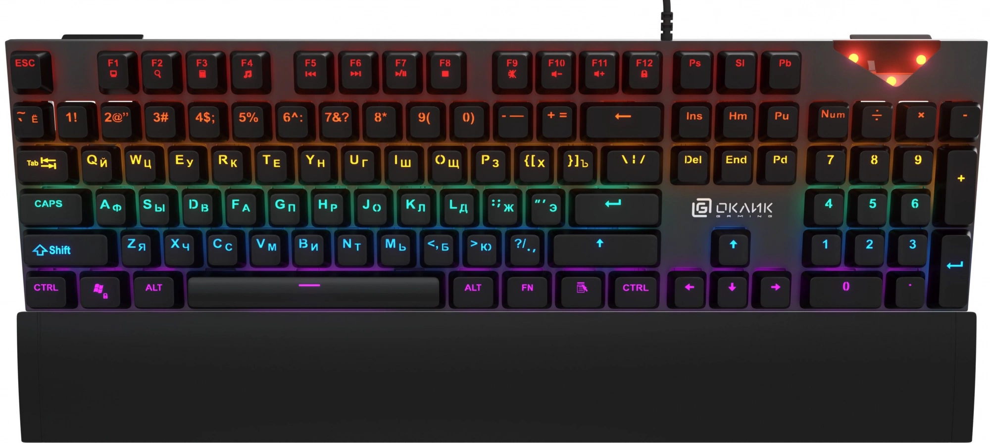 Клавиатура Оклик 935G RAGNAR механическая черный USB Multimedia for gamer LED (подставка для запястий)