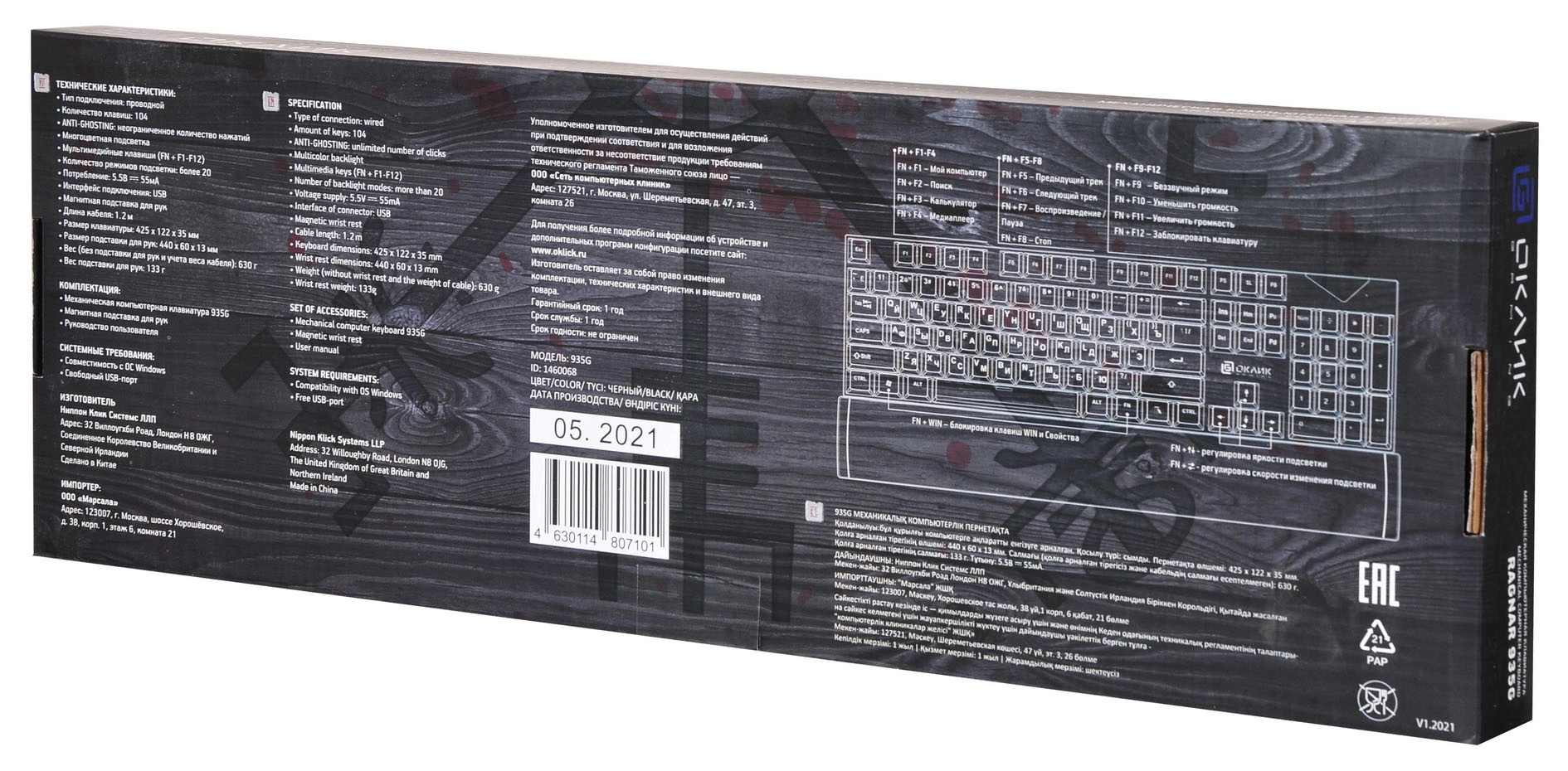 | Размеры клавиатуры | 470x44x165мм |