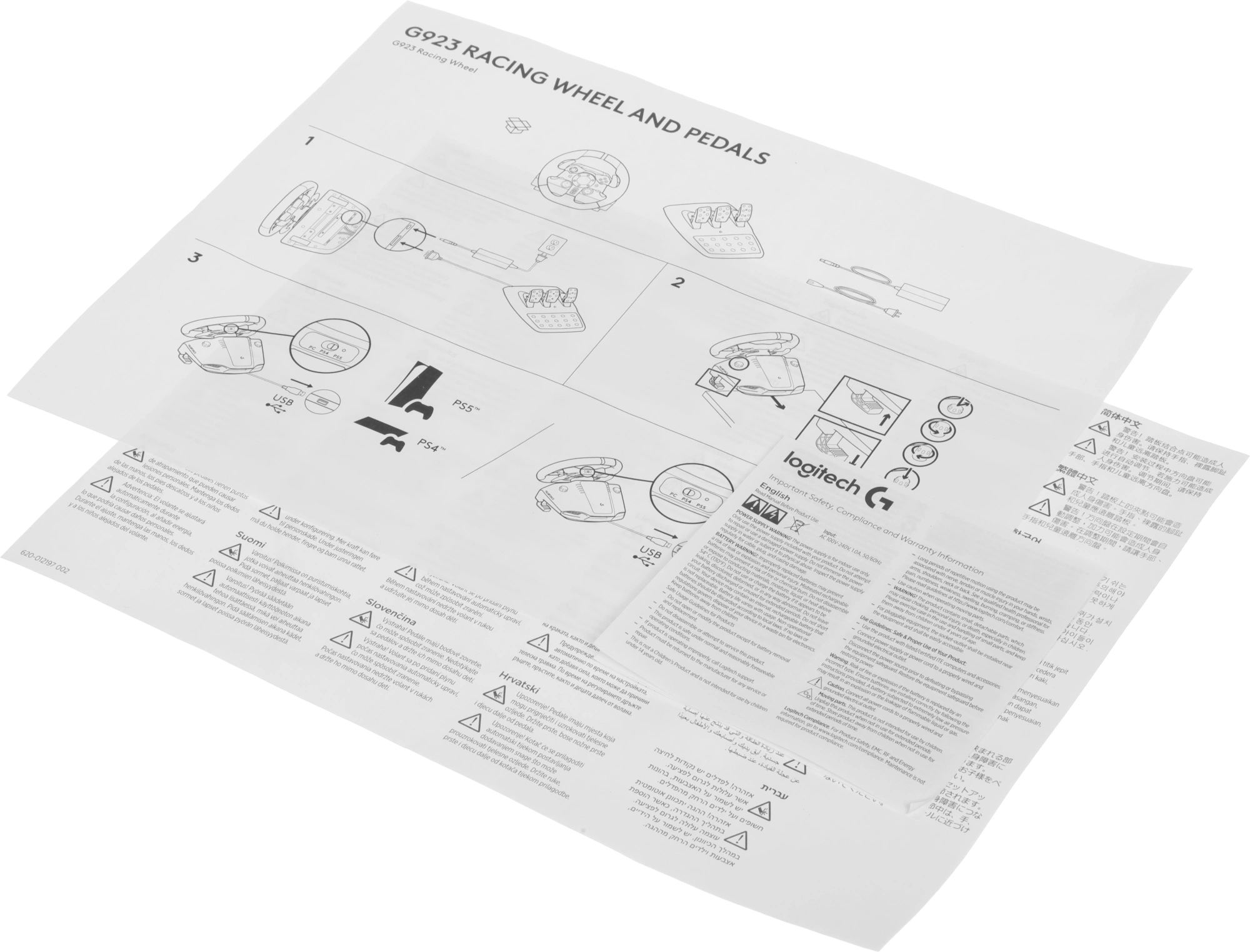 Руль Logitech G923 10кноп. (с педалями) черный
