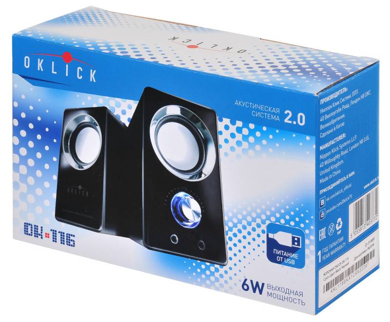 Колонки Оклик OK-116 2.0 черный 6Вт