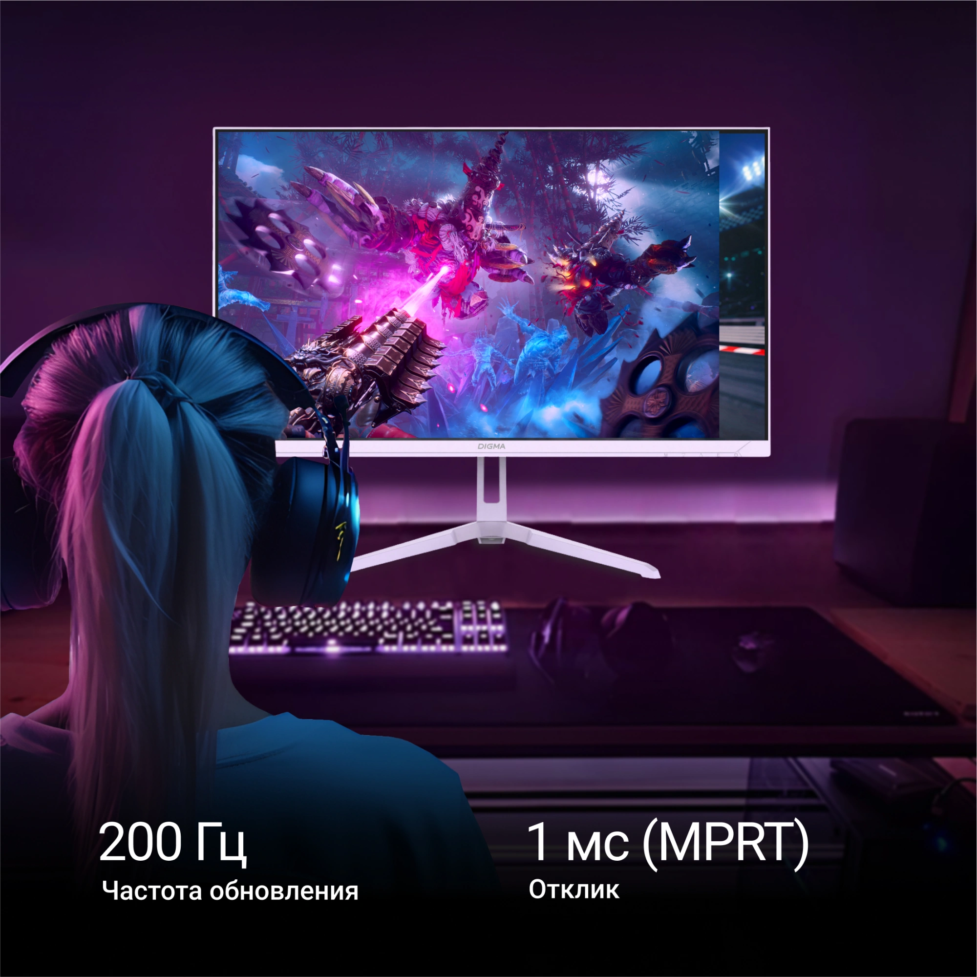 Монитор Digma 23.8" Overdrive 24P410F сиреневый IPS LED 1ms 16:9 HDMI матовая 300cd 178гр/178гр 1920x1080 200Hz G-Sync FreeSync DP FHD USB 2.8кг