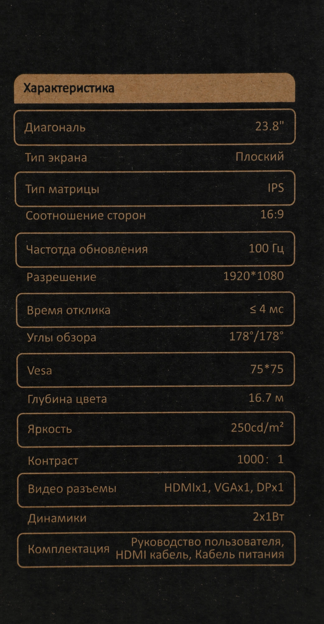 Монитор HKC 23.8" MB24V13FS129 черный IPS LED 16:9 HDMI M/M 250cd 178гр/178гр 1920x1080 100Hz VGA DP FHD 3.35кг