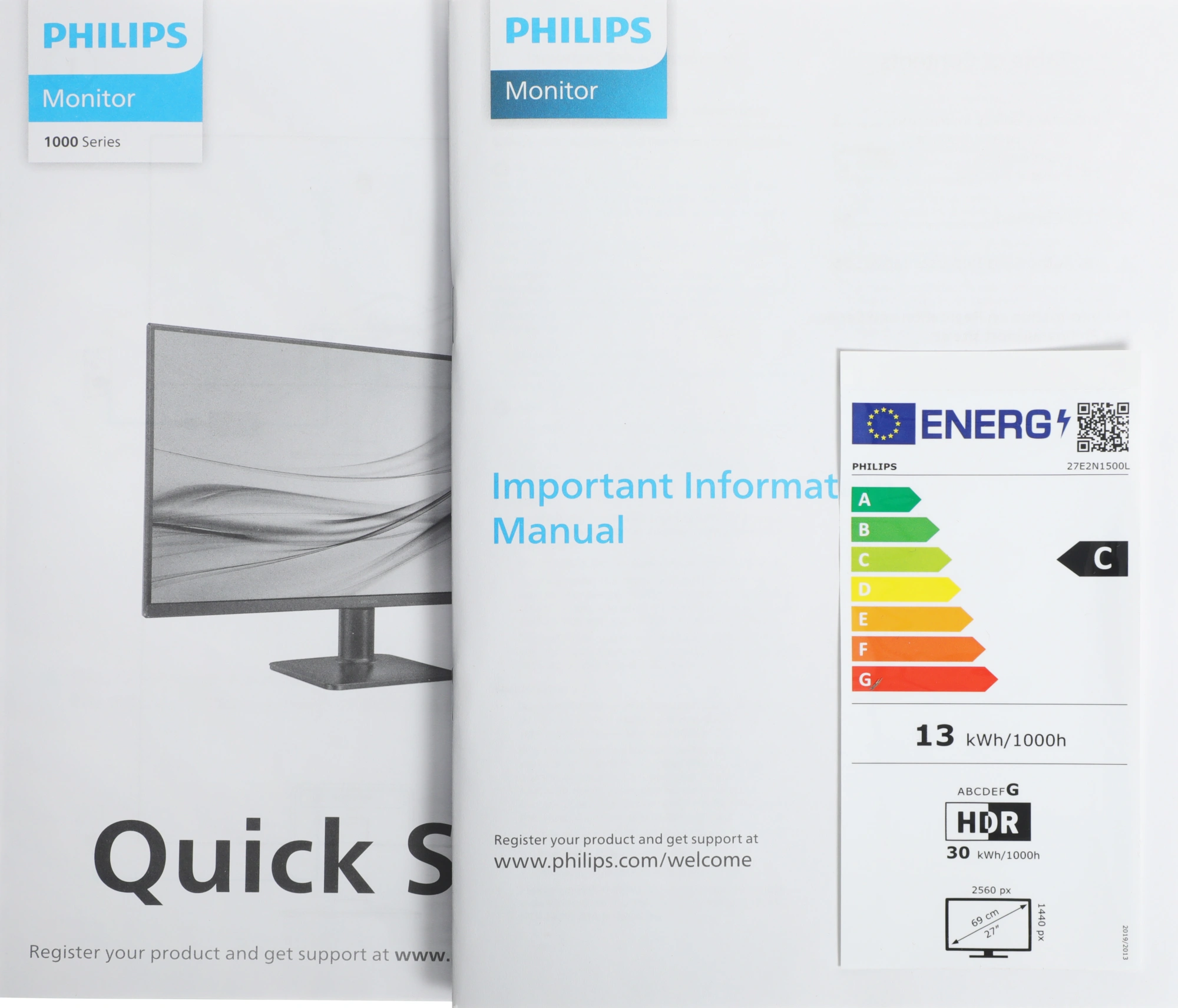 Монитор Philips 27" 27E2N1500L черный IPS LED 16:9 HDMI матовая 1000:1 300cd 178гр/178гр 2560x1440 75Hz DP Quad HD 2K (1440p) 3.19кг