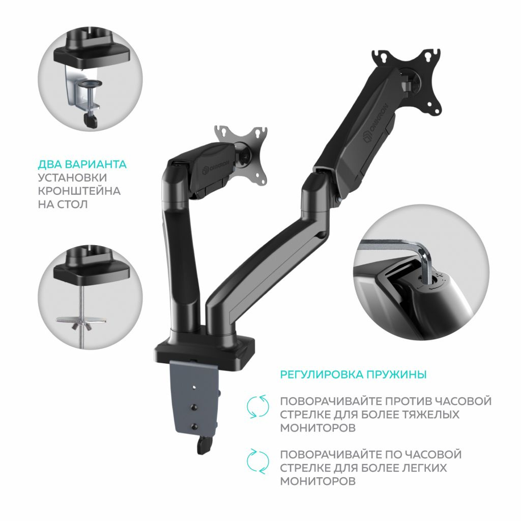 Кронштейн для мониторов Onkron G160 черный 13"-32" макс.16кг настольный поворот и наклон верт.перемещ.