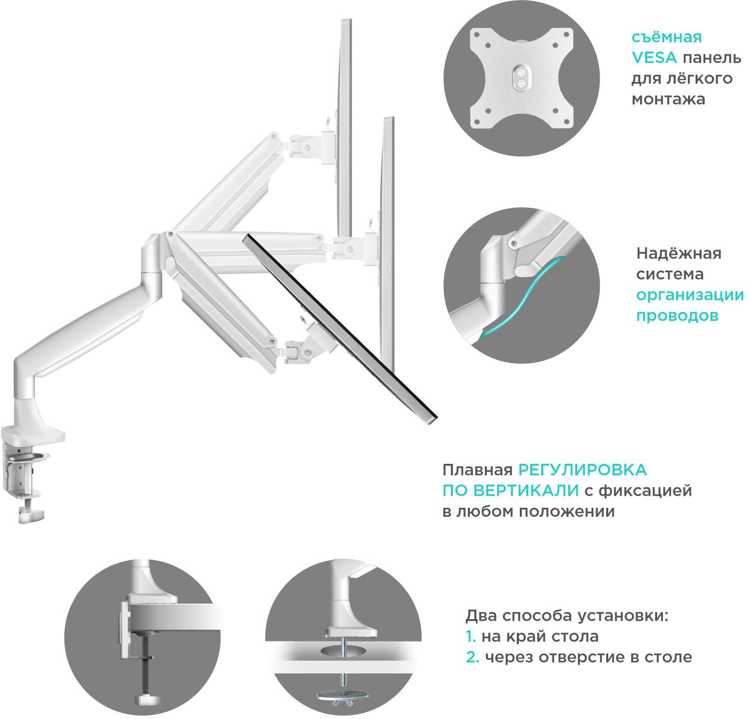 | Подходит для мониторов c диагональю | 15", 19", 22", 26", 32" |