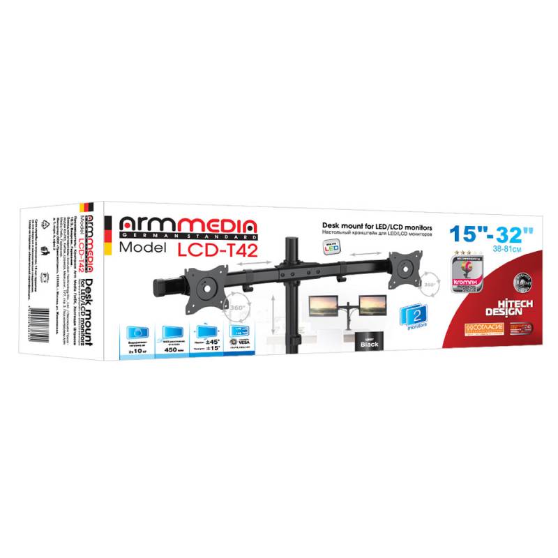 Кронштейн для мониторов Arm Media LCD-T42 черный 15"-32" макс.20кг настольный поворот и наклон верт.перемещ.