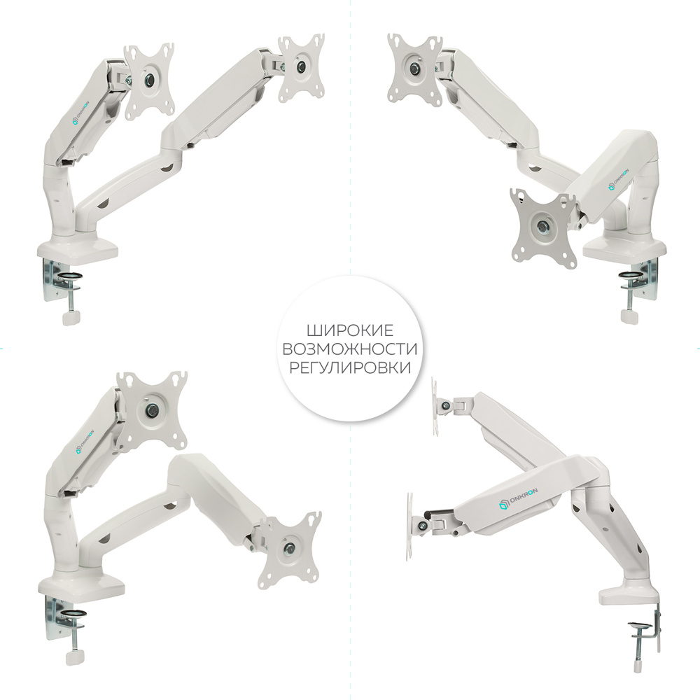 | Описание | Настольный наклонно-поворотный кронштейн для двух мониторов, выполненный по технологии газлифт, ONKRON G160 подходит для мониторов и телевизоров диагональю от 13 до 27 дюймов и весом до 8 кг на каждый. |