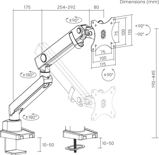 | Особенности | Настольный кронштейн для монитора с системой газ-лифт. |
