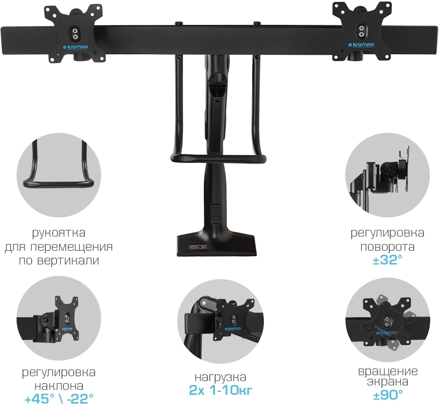 Кронштейн для мониторов Kromax OFFICE-20 черный 17"-35" макс.10кг настольный поворот и наклон