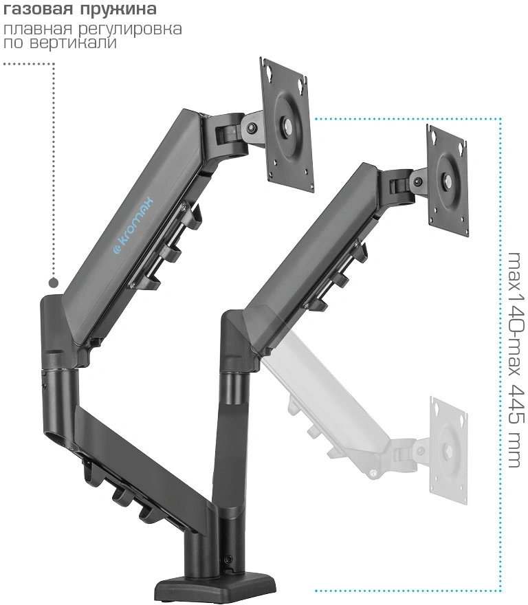 Кронштейн для мониторов ЖК Kromax OFFICE-14 черный 15"-32" макс.10кг настольный поворот и наклон