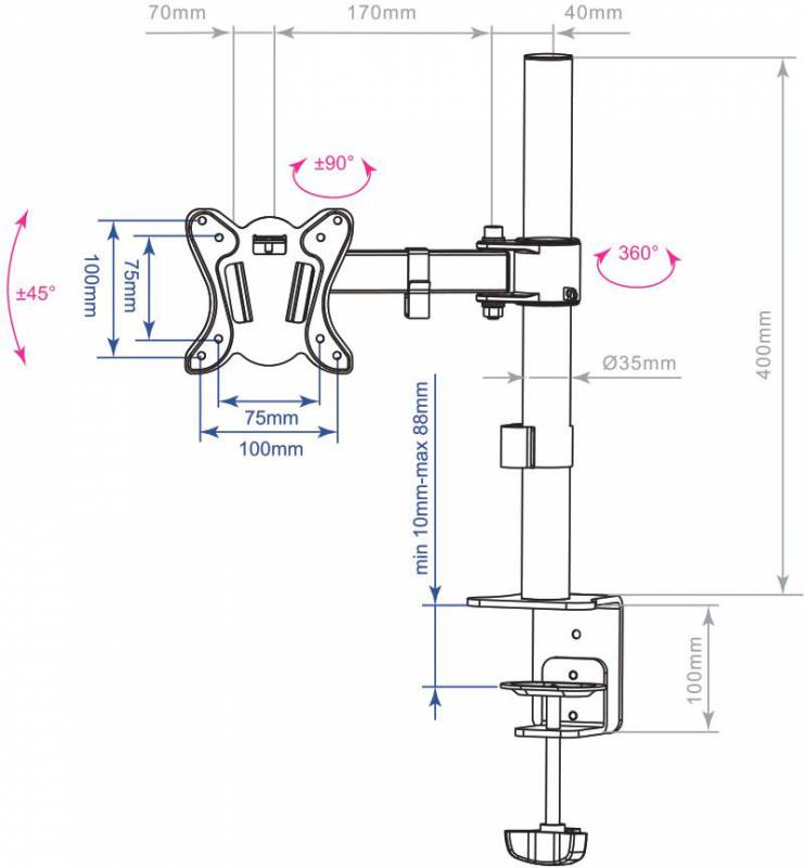 | Подходит для мониторов c диагональю | 15", 19", 22", 26", 32" |