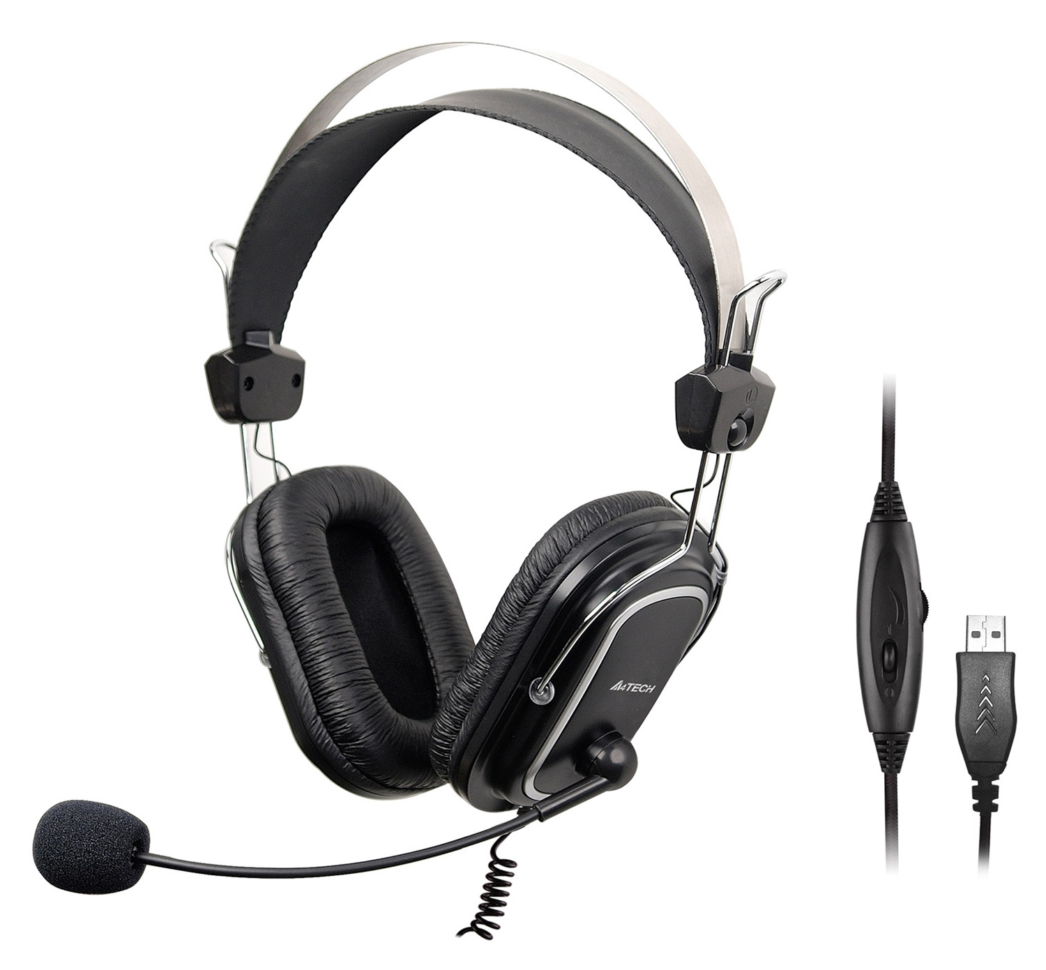 Наушники с микрофоном A4Tech HU-50 черный 2м накладные USB оголовье