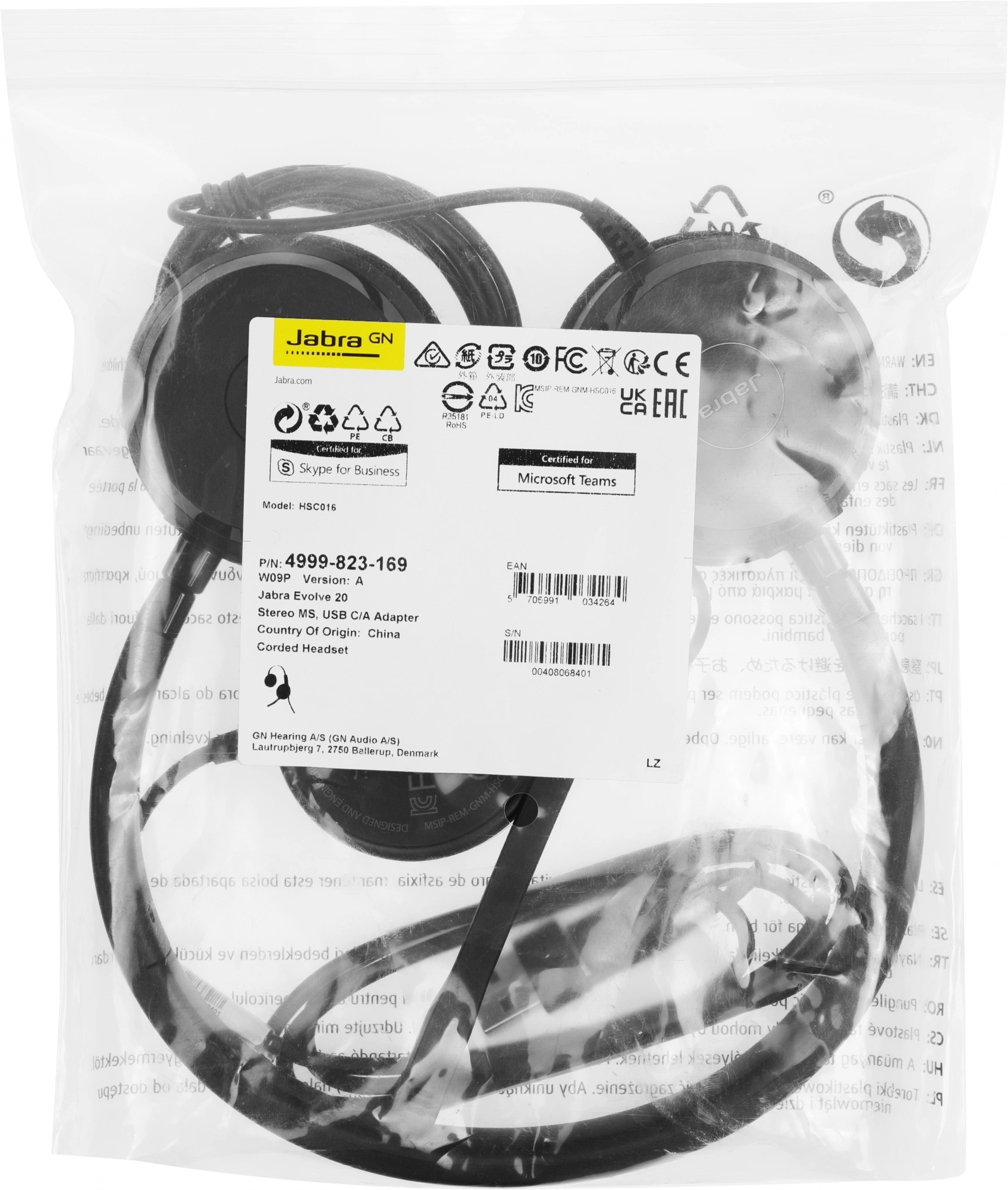Наушники с микрофоном Jabra Evolve 20 черный накладные USB оголовье (4999-823-169)