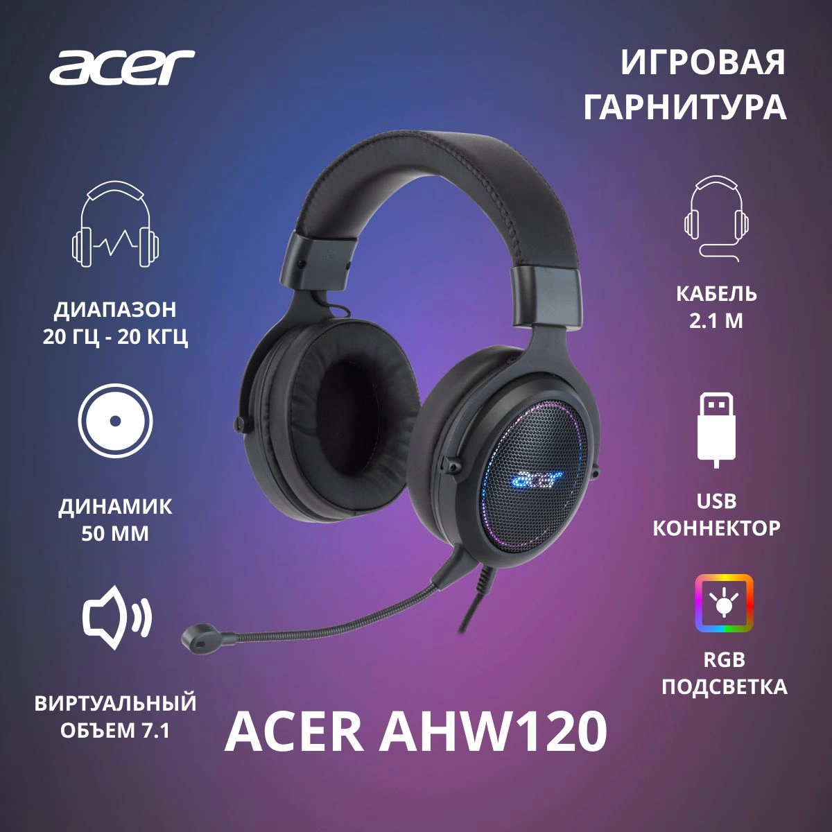 Наушники с микрофоном Acer AHW120 черный 2.1м мониторные USB оголовье (ZL.HDSCC.01C)