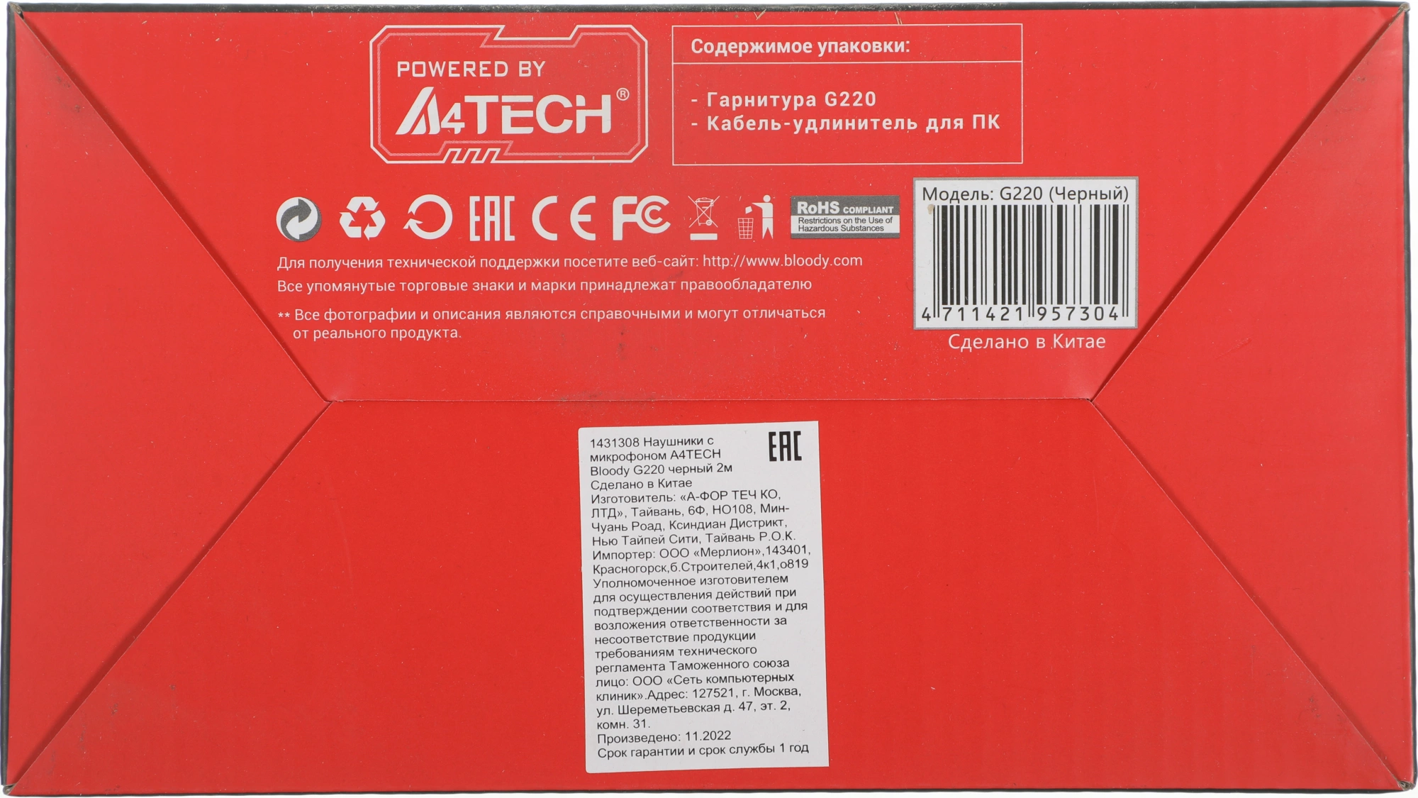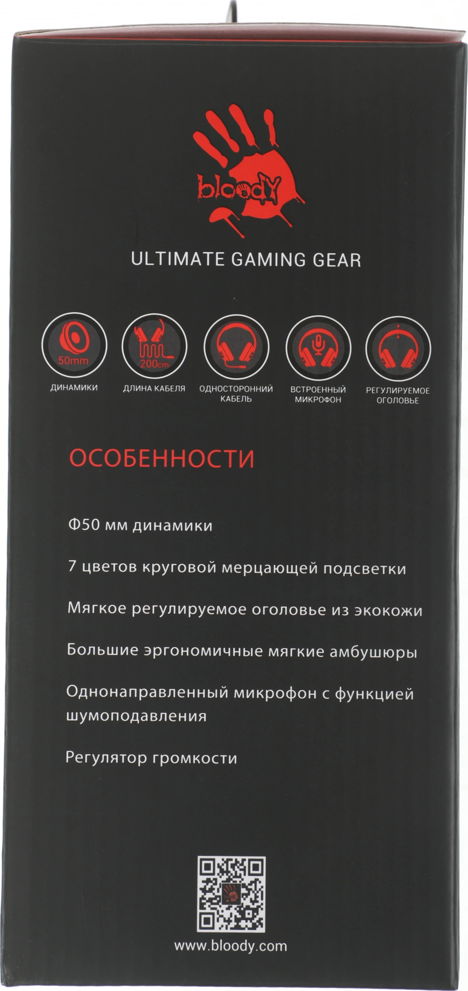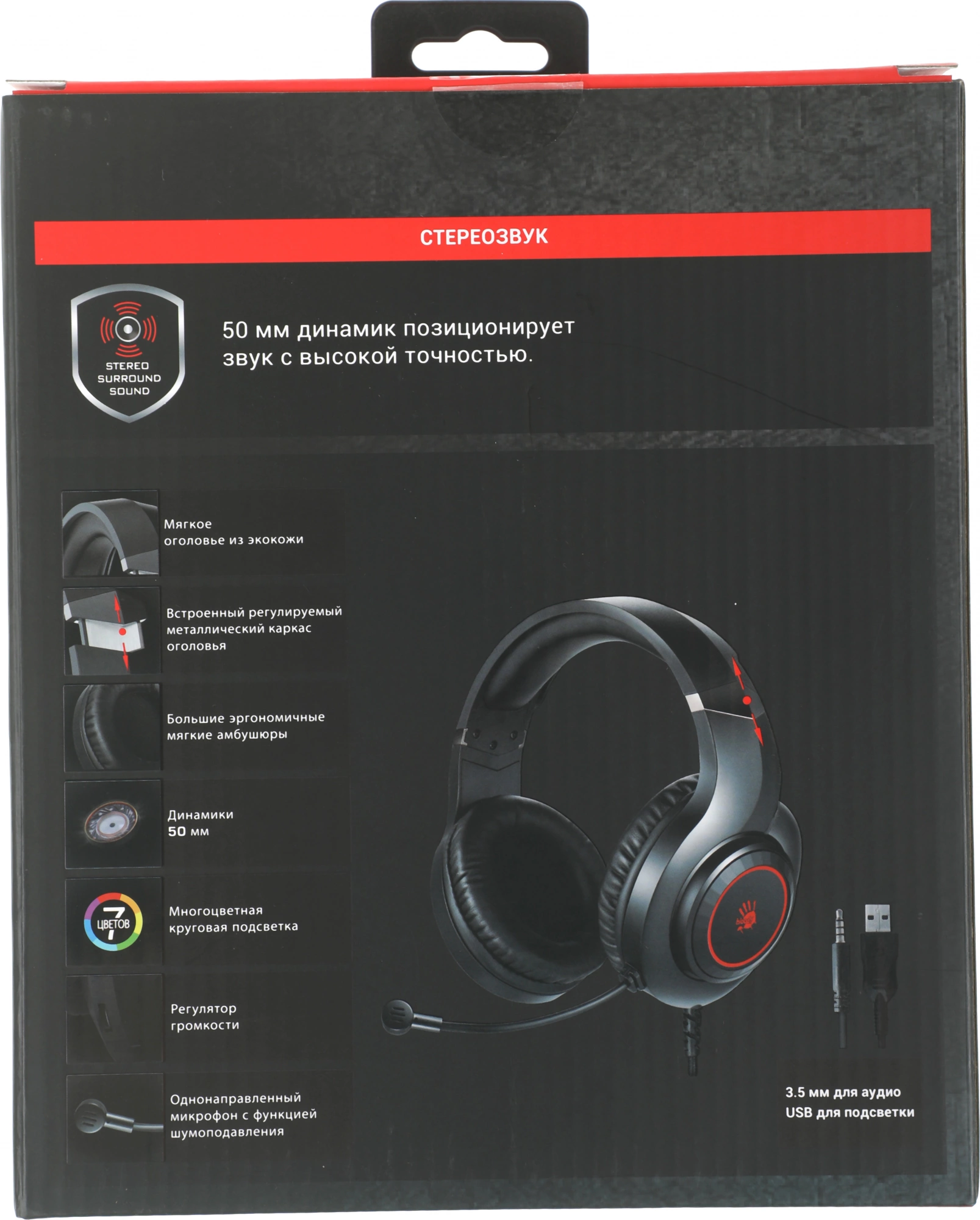 Наушники с микрофоном A4Tech Bloody G220 черный 2м мониторные оголовье (G220 AUX3.5-4PIN + USB)