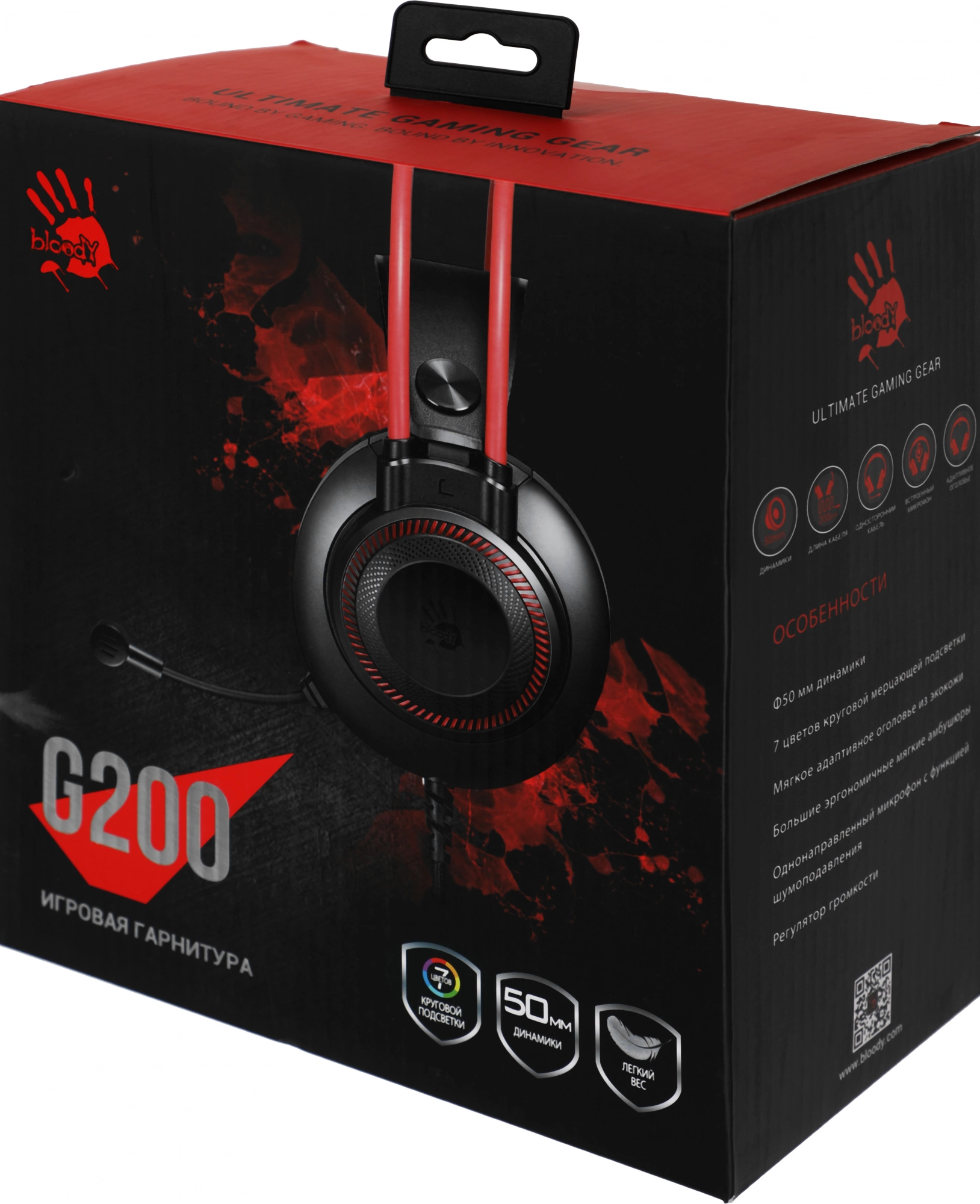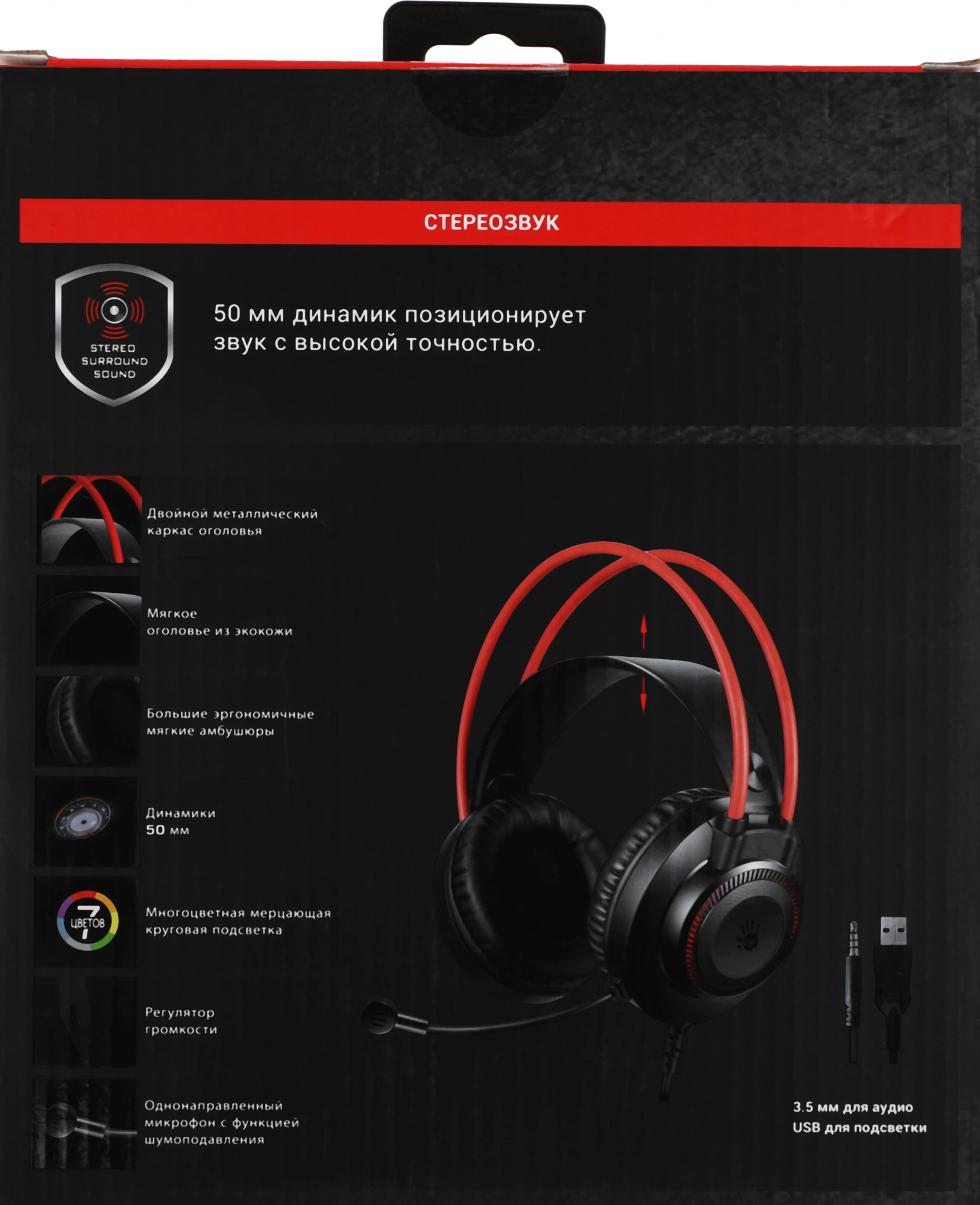 Наушники с микрофоном A4Tech Bloody G200 черный/красный 2м мониторные оголовье (G200 AUX3.5-4PIN +USB)