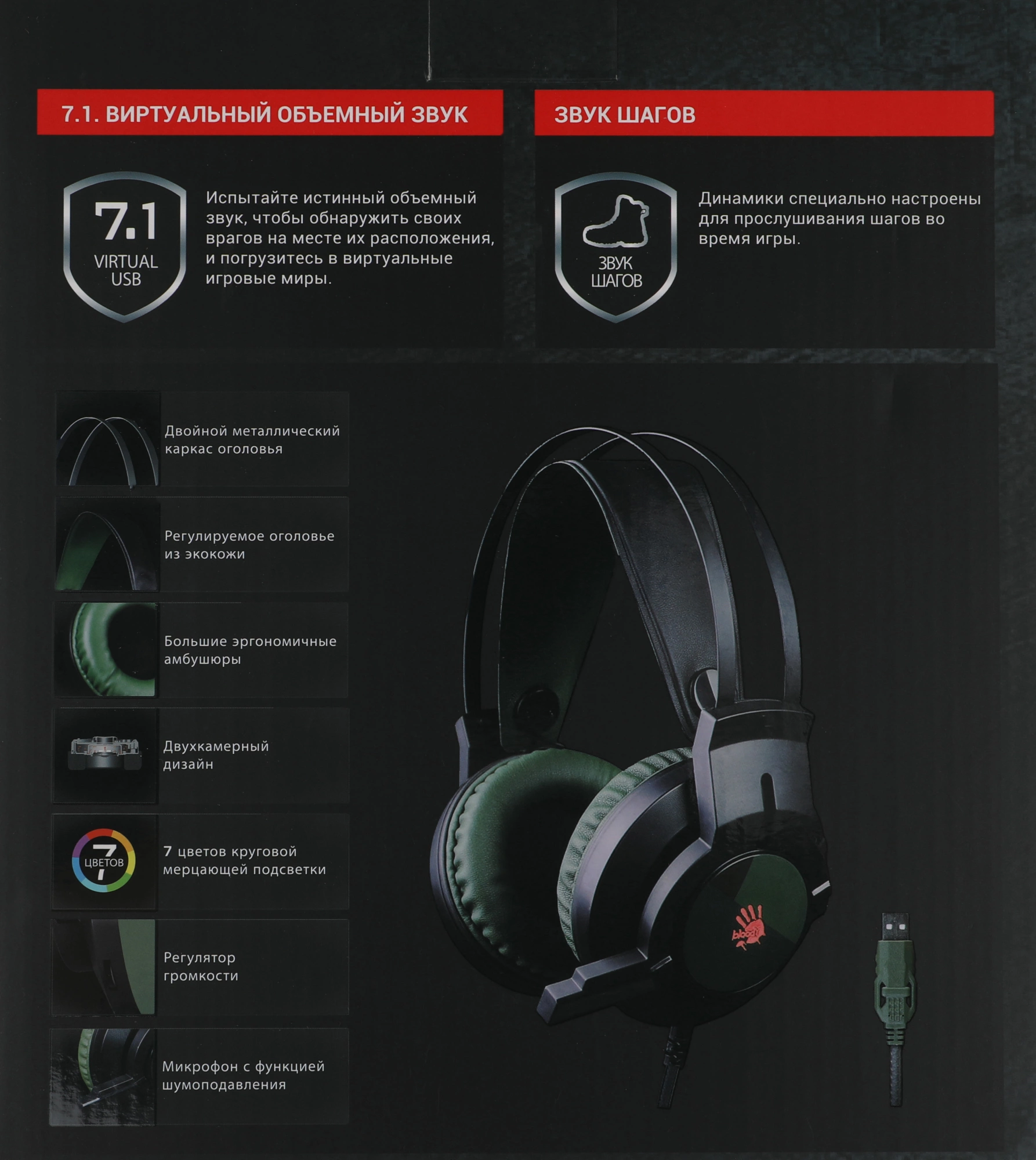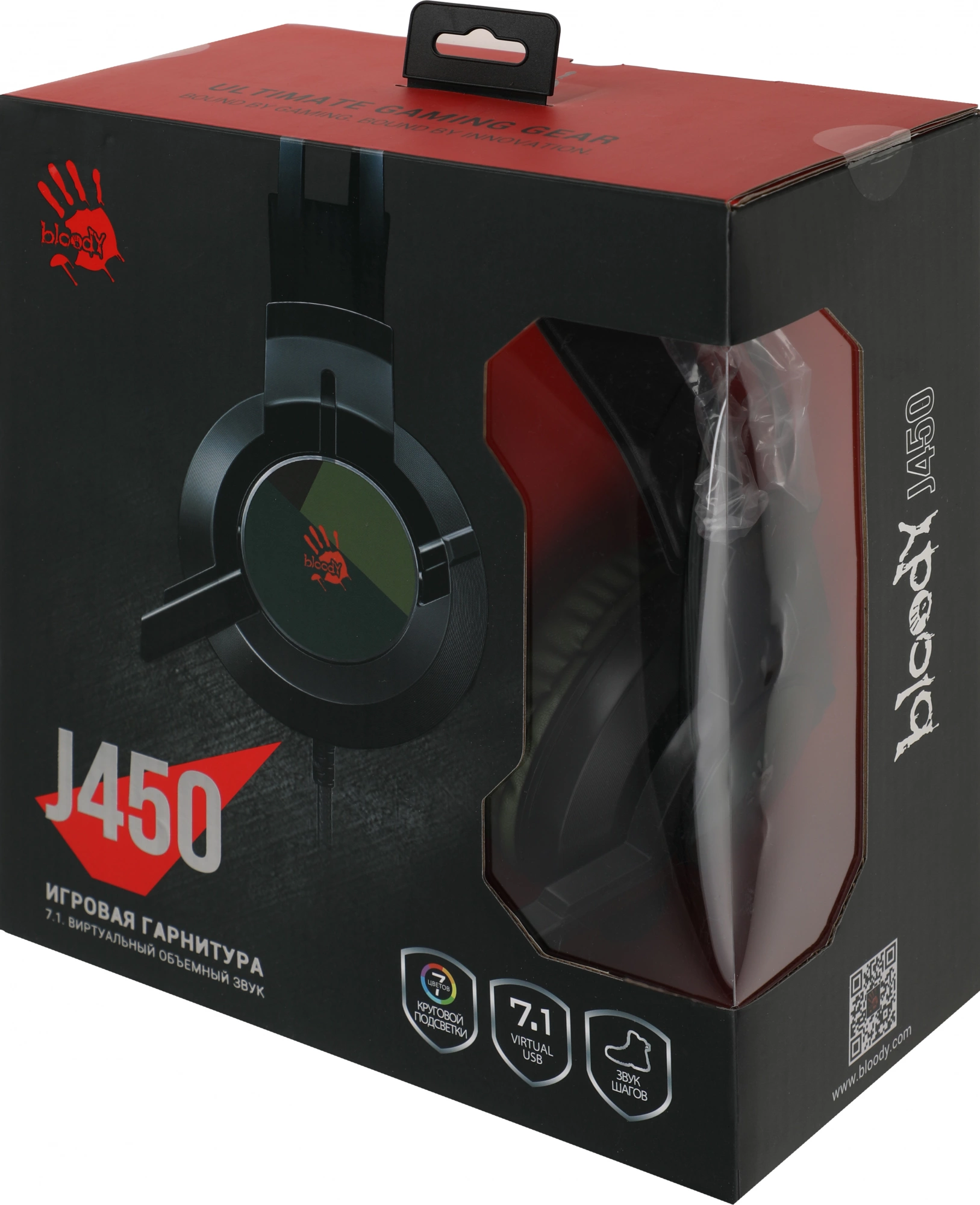 Наушники с микрофоном A4Tech Bloody J450 черный/зеленый 1.8м мониторные оголовье (J450)