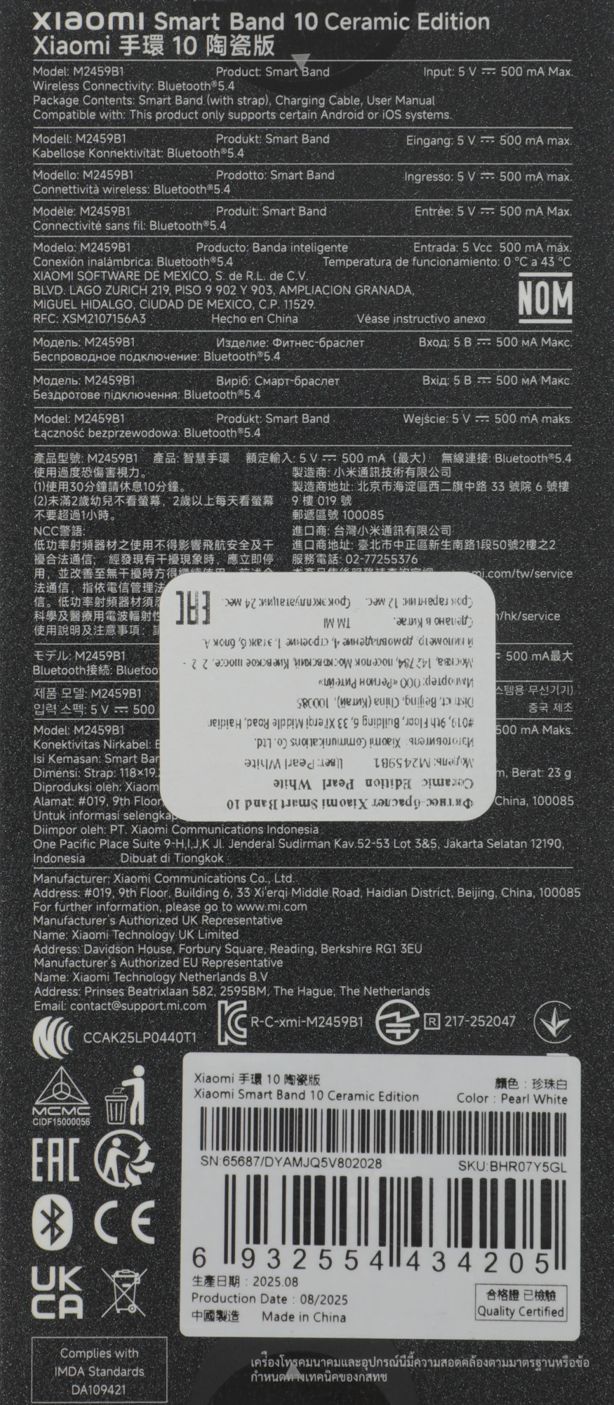 Фитнес-трекер Xiaomi Smart Band 10 AMOLED корп.:белый рем.:белый (BHR07Y5GL)