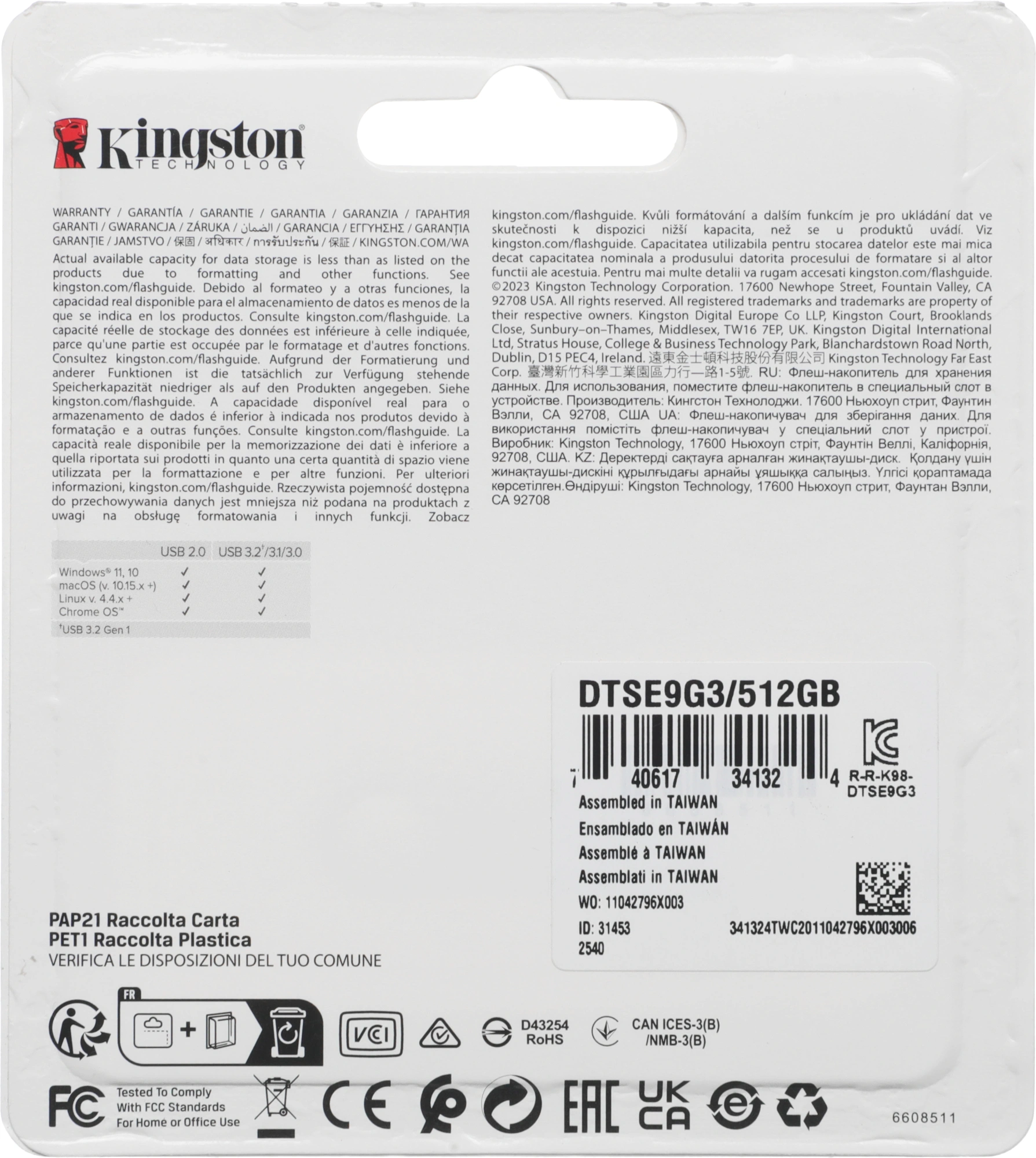 | PartNumber/Артикул Производителя | DTSE9G3/512GB |