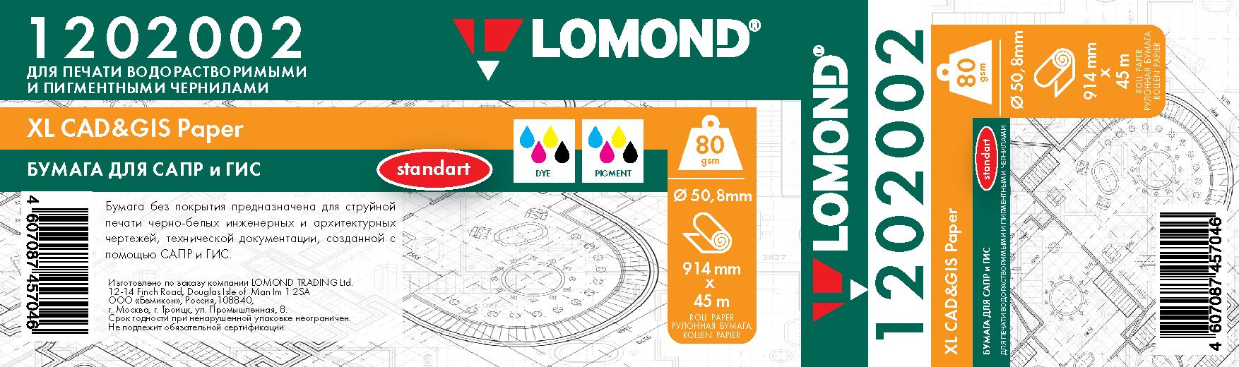 Бумага Lomond Стандарт 1202002 914мм-45м/80г/м2/белый матовое инженерная бумага втулка:50.8мм (2")