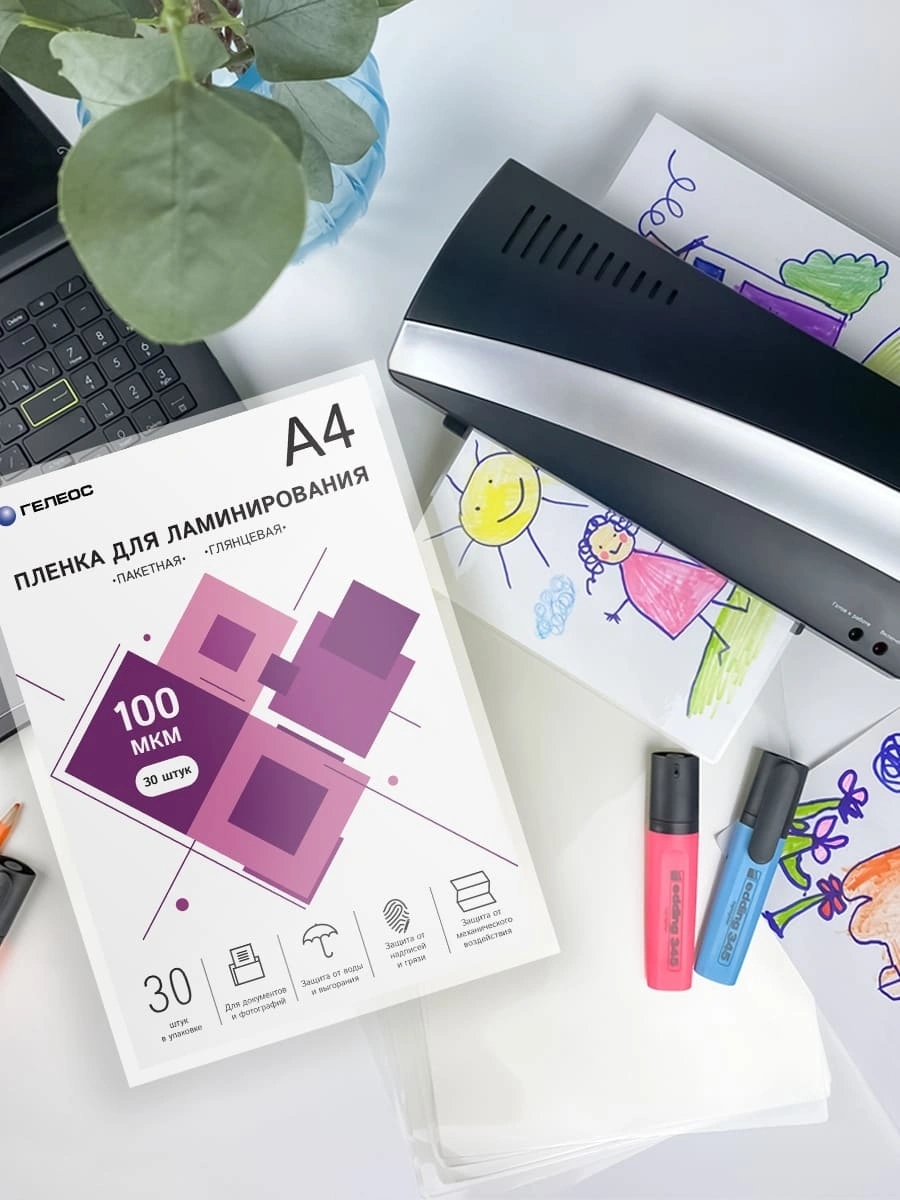 Пленка для ламинирования Heleos 100мкм A4 (30шт) глянцевая 216x303мм LPA4-100-30